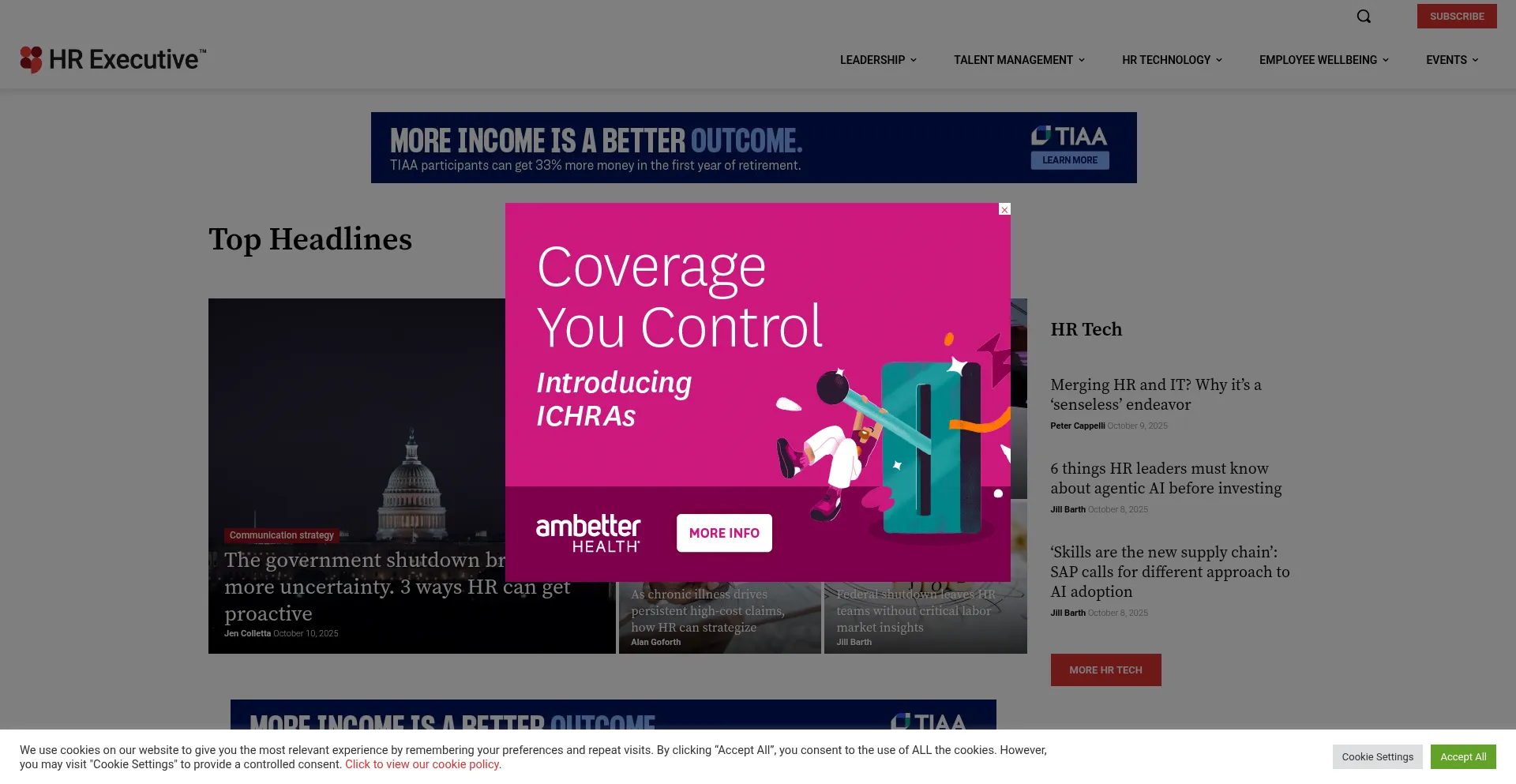 该网站实现符合GDPR或CCPA等隐私法规的cookie同意机制。这表明 hrexecutive.com 遵守数据保护标准并为用户提供对个人数据收集实践的控制。