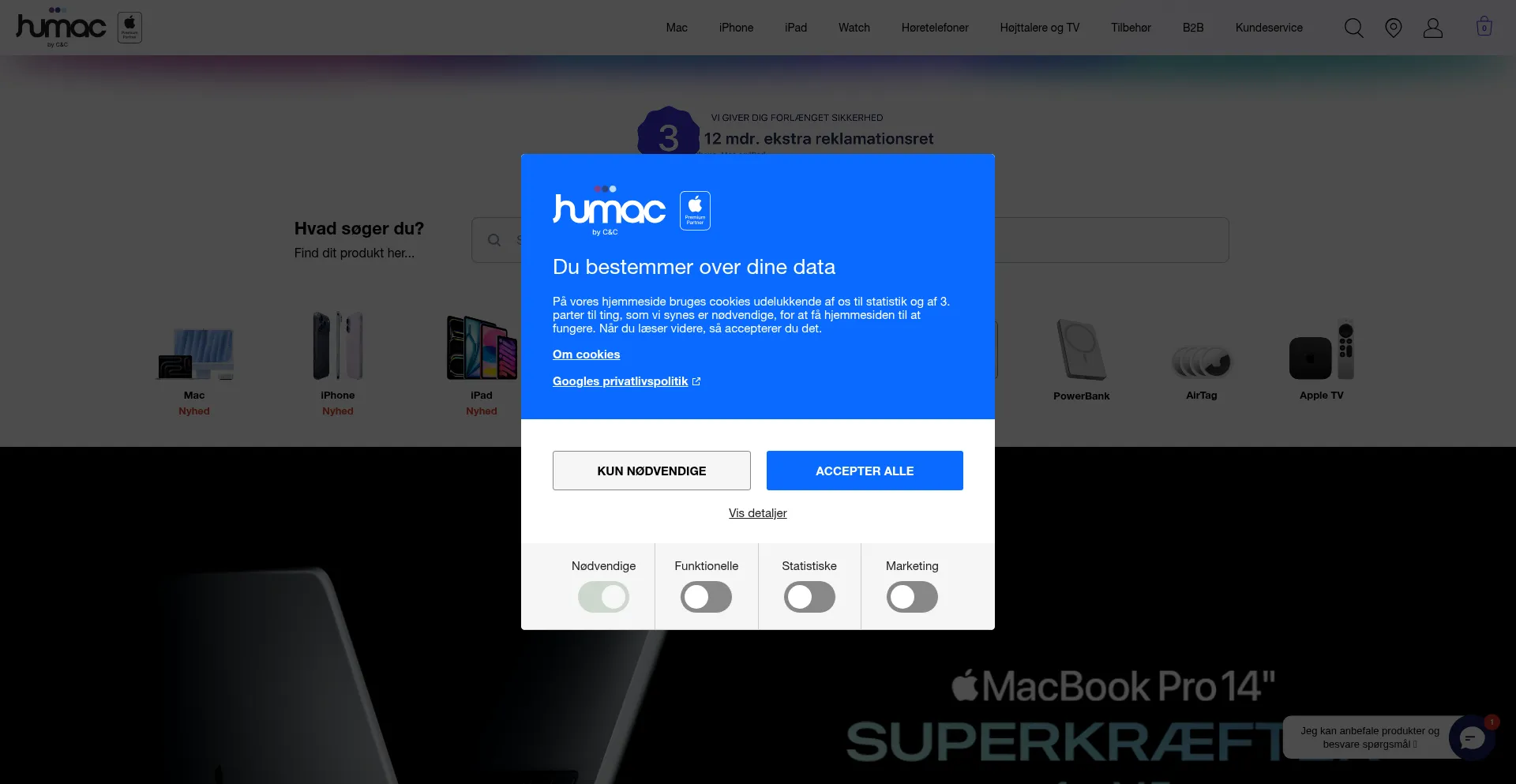 humac.dk 使用 Google Tag Manager 在其网站上添加和更新追踪代码(标签)。