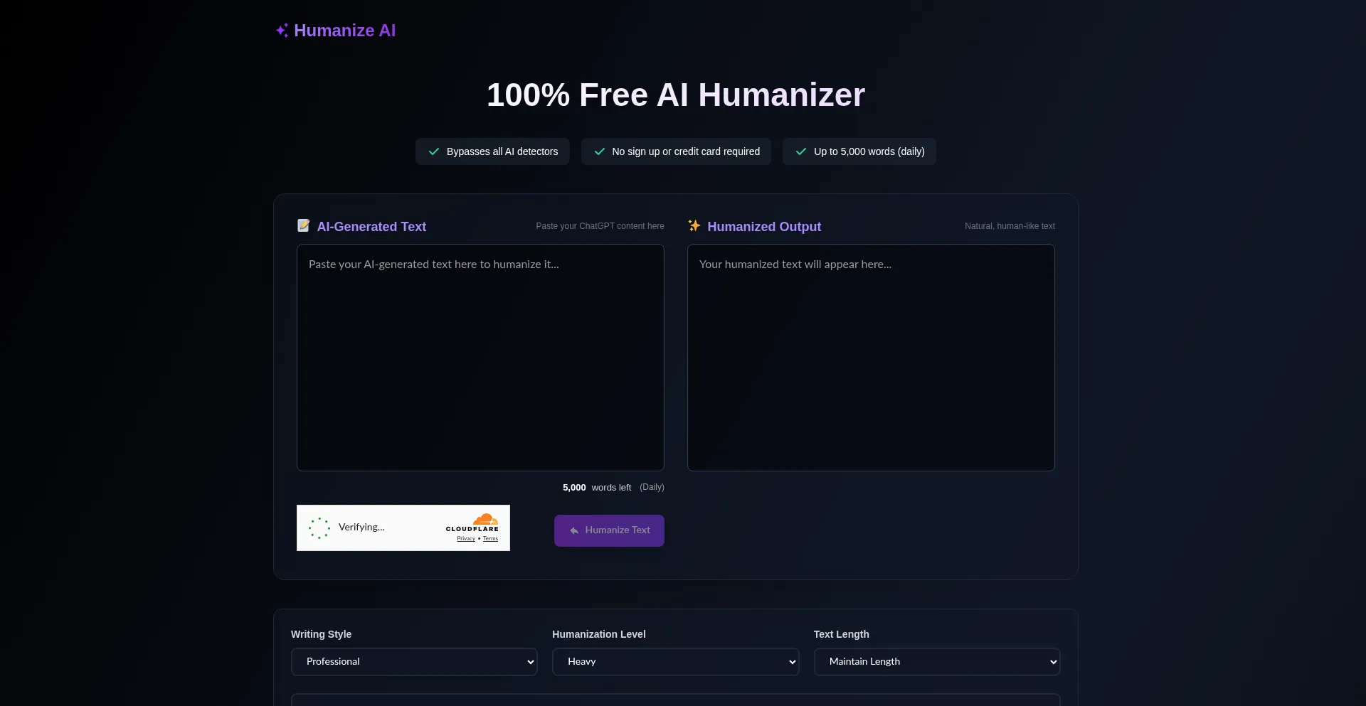 Humanize AI - 100% FREE AI Text Humanizer (5k words)