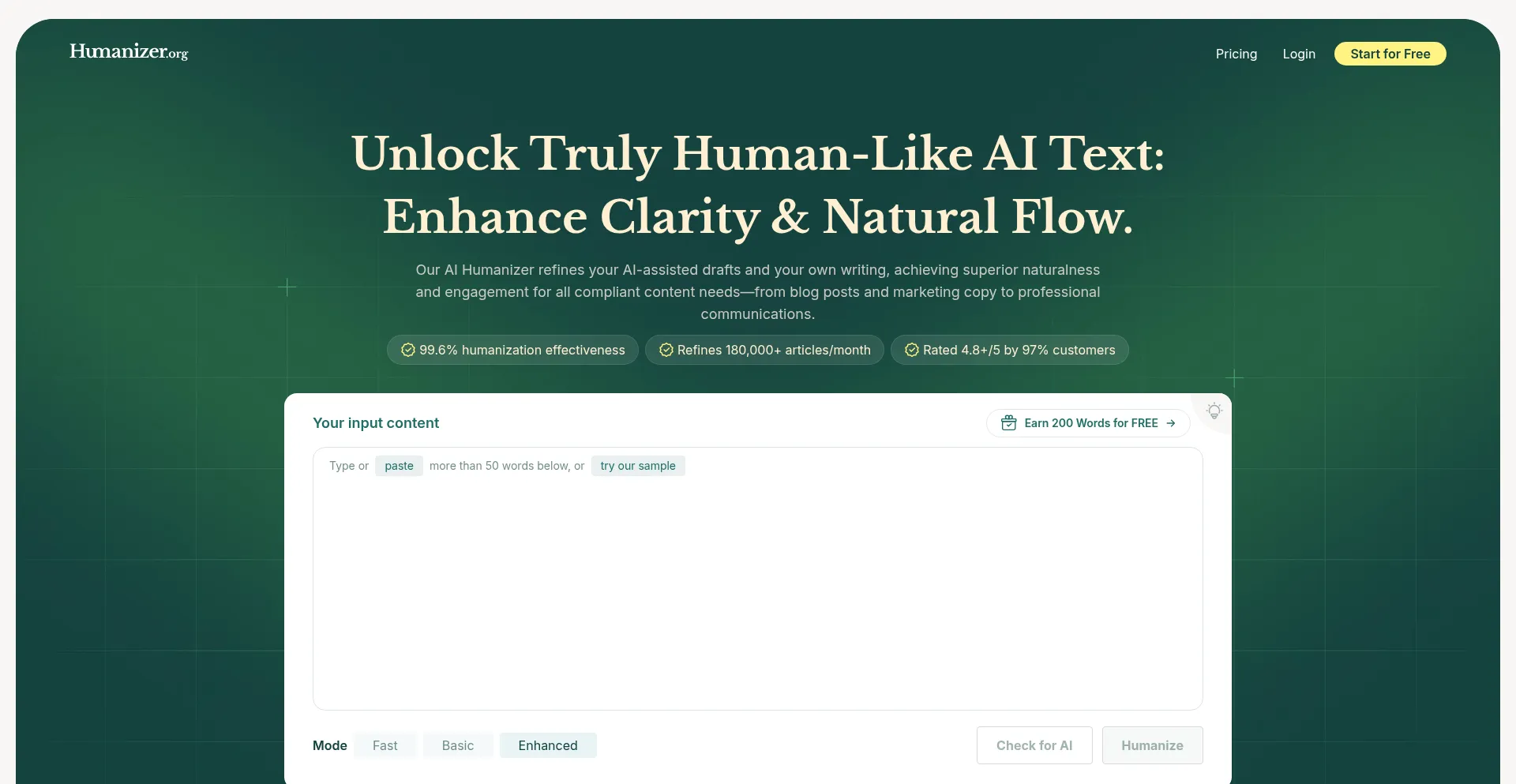 Humanize AI text with Humanizer.org. Get authentic, human-sounding content that flows naturally and beats AI detectors. Try our AI humanizer for FREE!