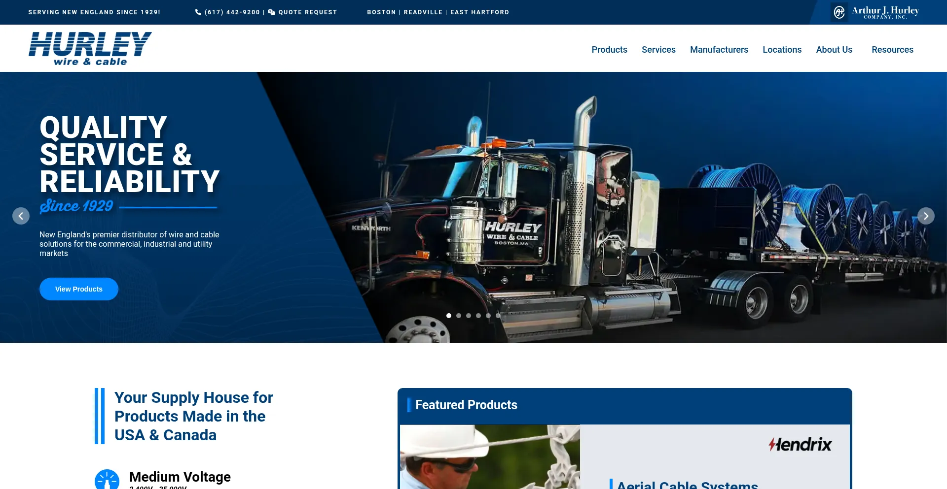 Arthur J. Hurley Company, also known as Hurley Wire and Cable, is a nationwide distributor and wholesale supplier of low and medium voltage wire and cable. With locations in Bos...
