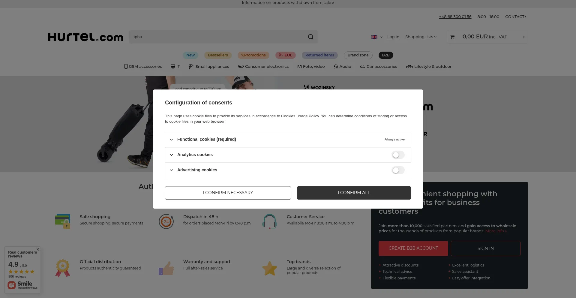 该网站实现符合GDPR或CCPA等隐私法规的cookie同意机制。这表明 hurtel.pl 遵守数据保护标准并为用户提供对个人数据收集实践的控制。