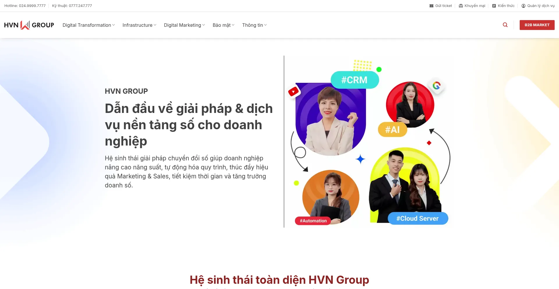 HVN - dẫn đầu về dịch vụ nền tảng số cho doanh nghiệp. Hỗ trợ doanh nghiệp ứng dụng công nghệ vào chuyển đổi số giúp doanh nghiệp vậ...