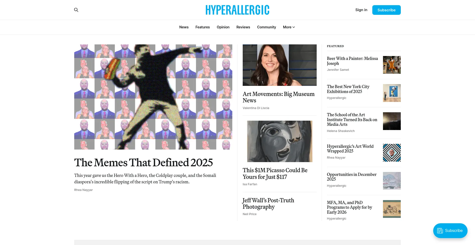 该网站实现数据收集表单,请求个人信息,包括姓名、电子邮件地址、电话号码或其他敏感详细信息。用户应验证 hyperallergic.com 的合法性并在提交个人数据前查看隐私政策。