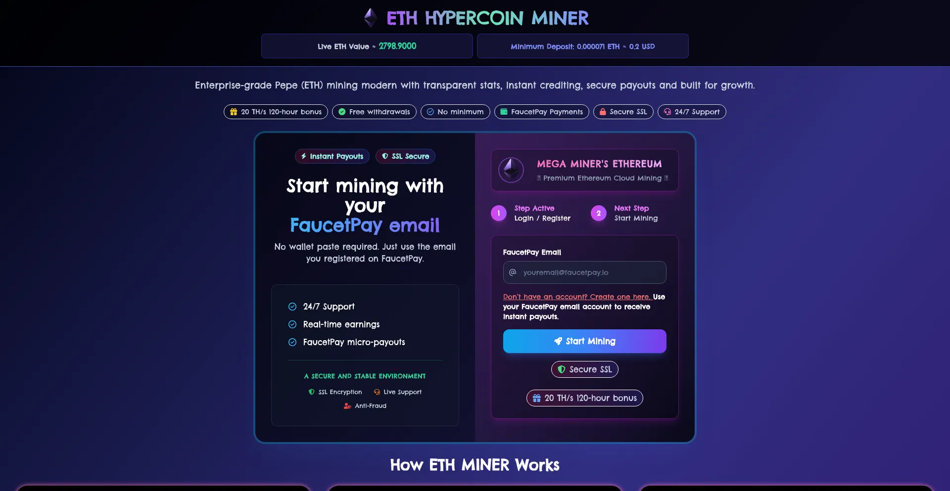 网站 hyperprofitcoin.site 可能提供云挖矿服务或加密货币挖矿投资。一些平台提供合法的挖矿租赁服务,而其他平台可能使用虚假的挖矿仪表板来显示无法提取的虚拟收益。