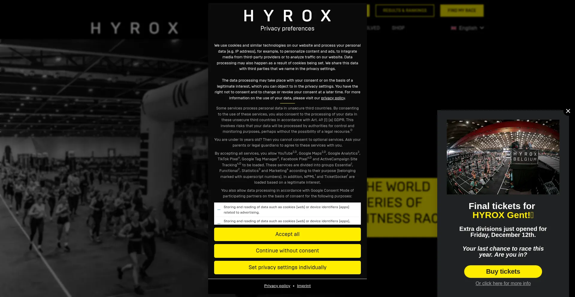该网站实现符合GDPR或CCPA等隐私法规的cookie同意机制。这表明 hyroxbenelux.com 遵守数据保护标准并为用户提供对个人数据收集实践的控制。