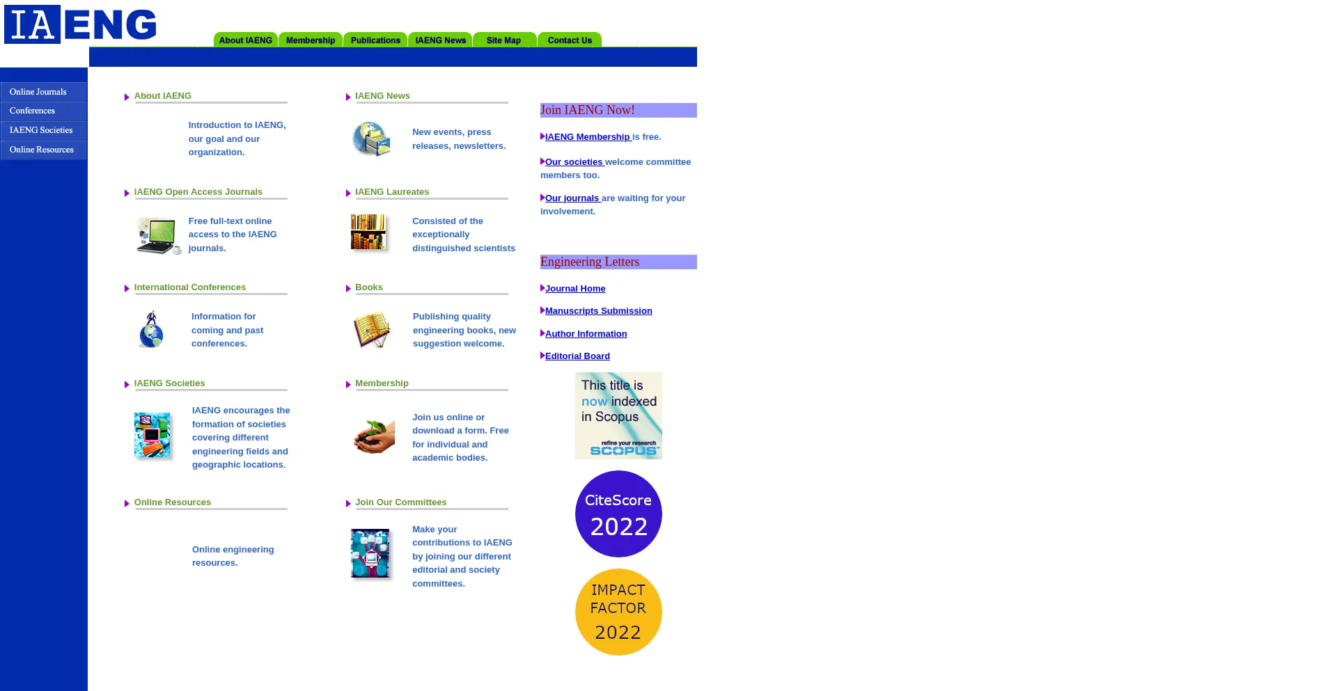 IAENG is the largest non-profit international association for all engineers and computer scientists. IAENG publishes scholarly peer-reviewed open access academic journals. IAENG...