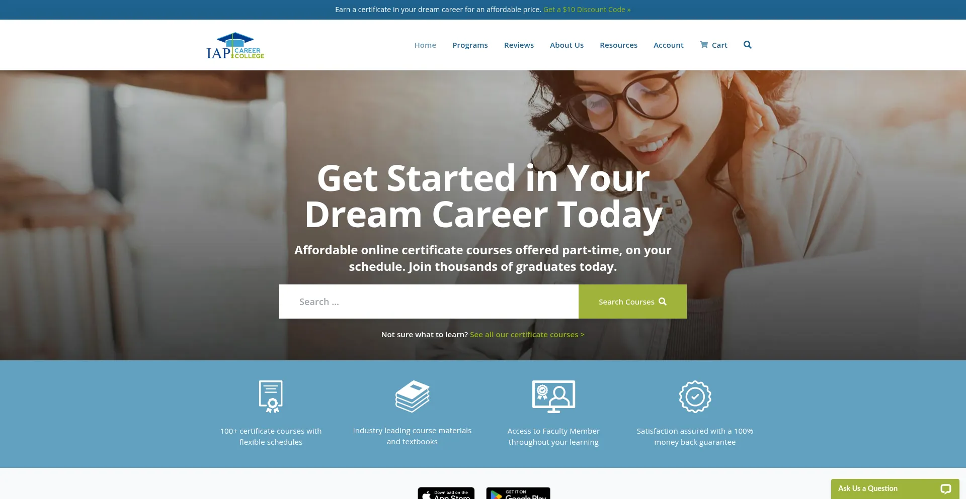 Looking for career certificate courses online? The International Association of Professions Career College lets you earn a certificate in 6 weeks part-time