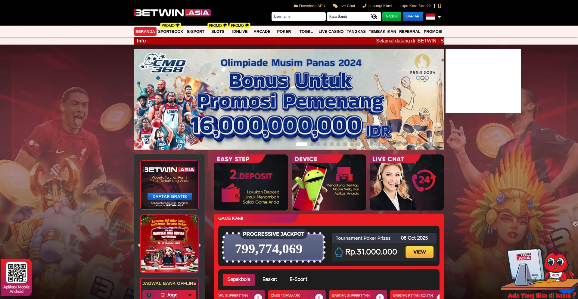 Ibetwin adalah situs taruhan online terpercaya dan terlengkap dengan pilihan game terbaik esport, slots, idnlive, togel, live casino, tangkas.