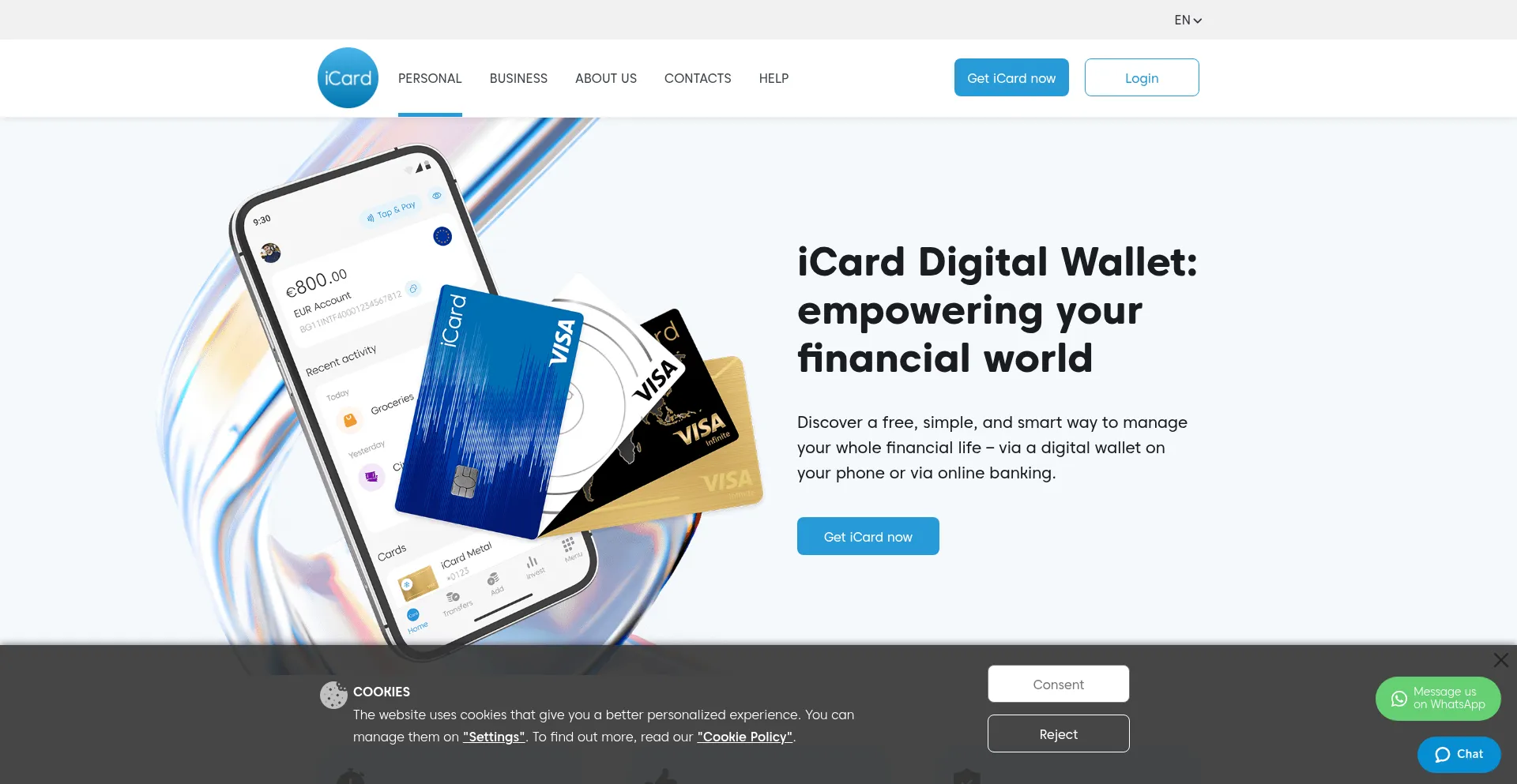 该网站实现符合GDPR或CCPA等隐私法规的cookie同意机制。这表明 icard.com 遵守数据保护标准并为用户提供对个人数据收集实践的控制。