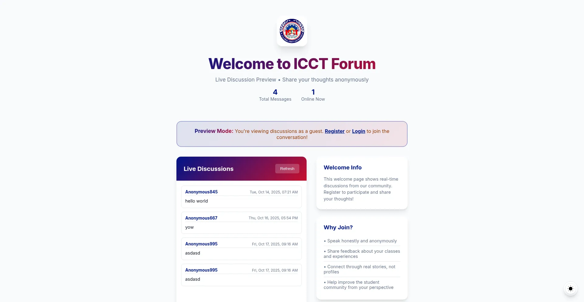 ICCT Forum - Official student discussion platform for ICCT College community. Join discussions, connect with peers, and stay updated.