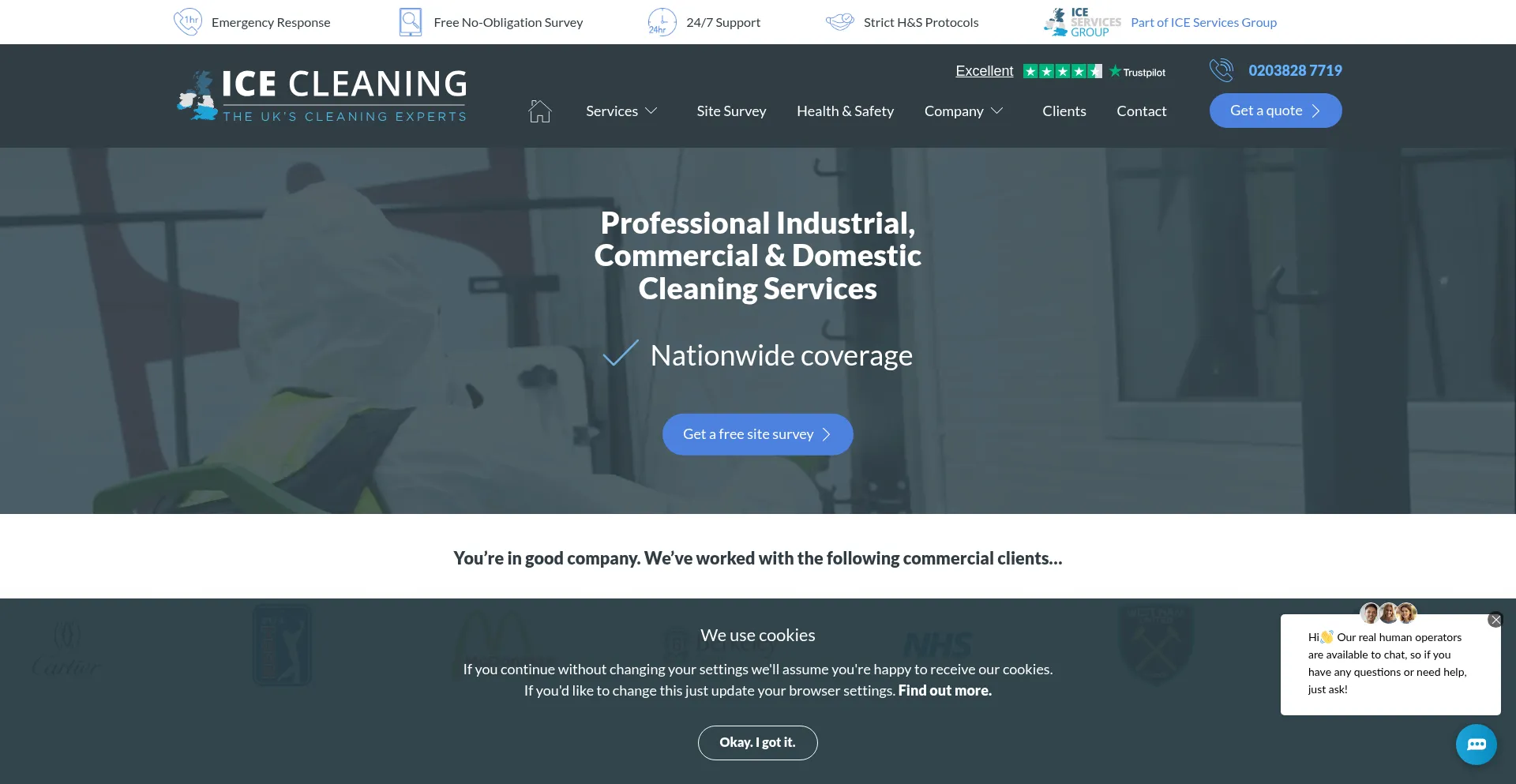 网站上存在社交媒体链接表明 icecleaning.co.uk 在社交媒体上维护官方账户,这是可信度和参与度的积极信号。
