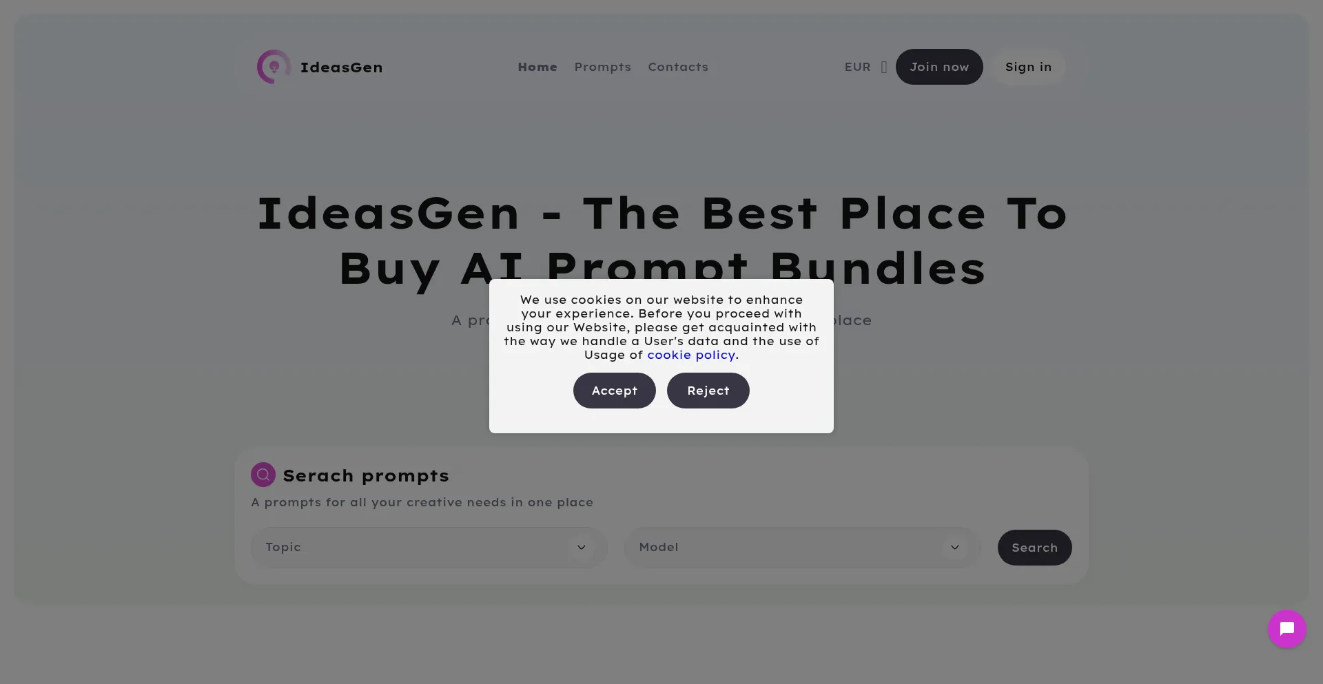 该网站实现符合GDPR或CCPA等隐私法规的cookie同意机制。这表明 ideas-gen.com 遵守数据保护标准并为用户提供对个人数据收集实践的控制。