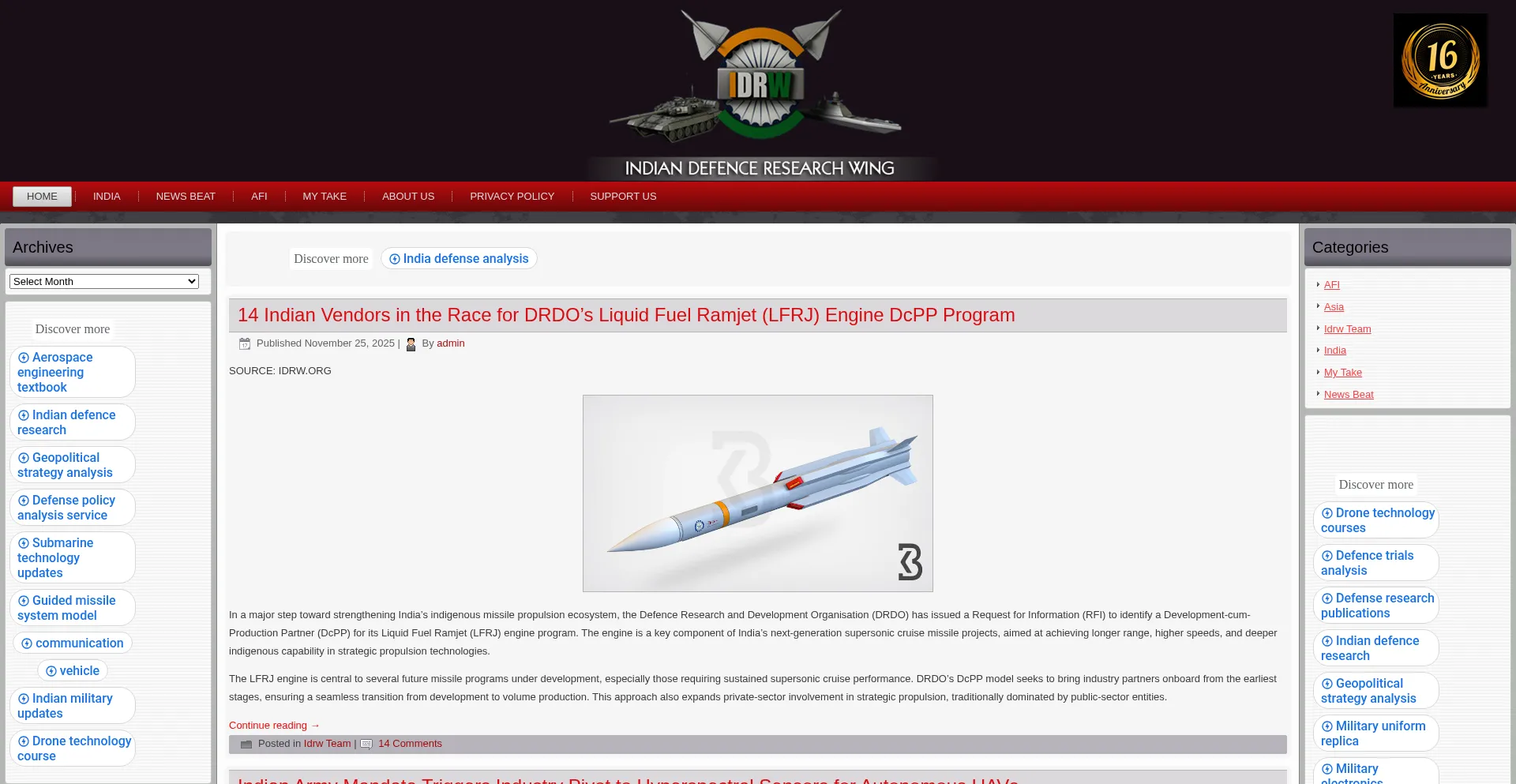 Indian Defence Research Wing - Latest and In-depth coverage, analysis of Indian Defence News from 2006