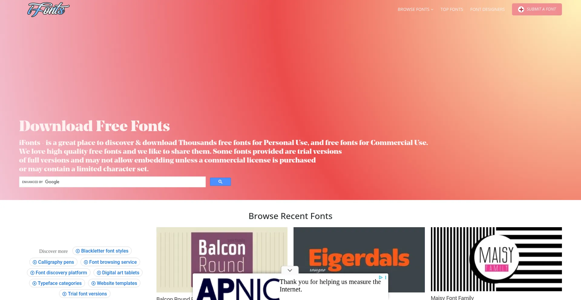 iFonts - is a great place to discover & download Thousands free fonts for Personal Use, and free fonts for Commercial Use.