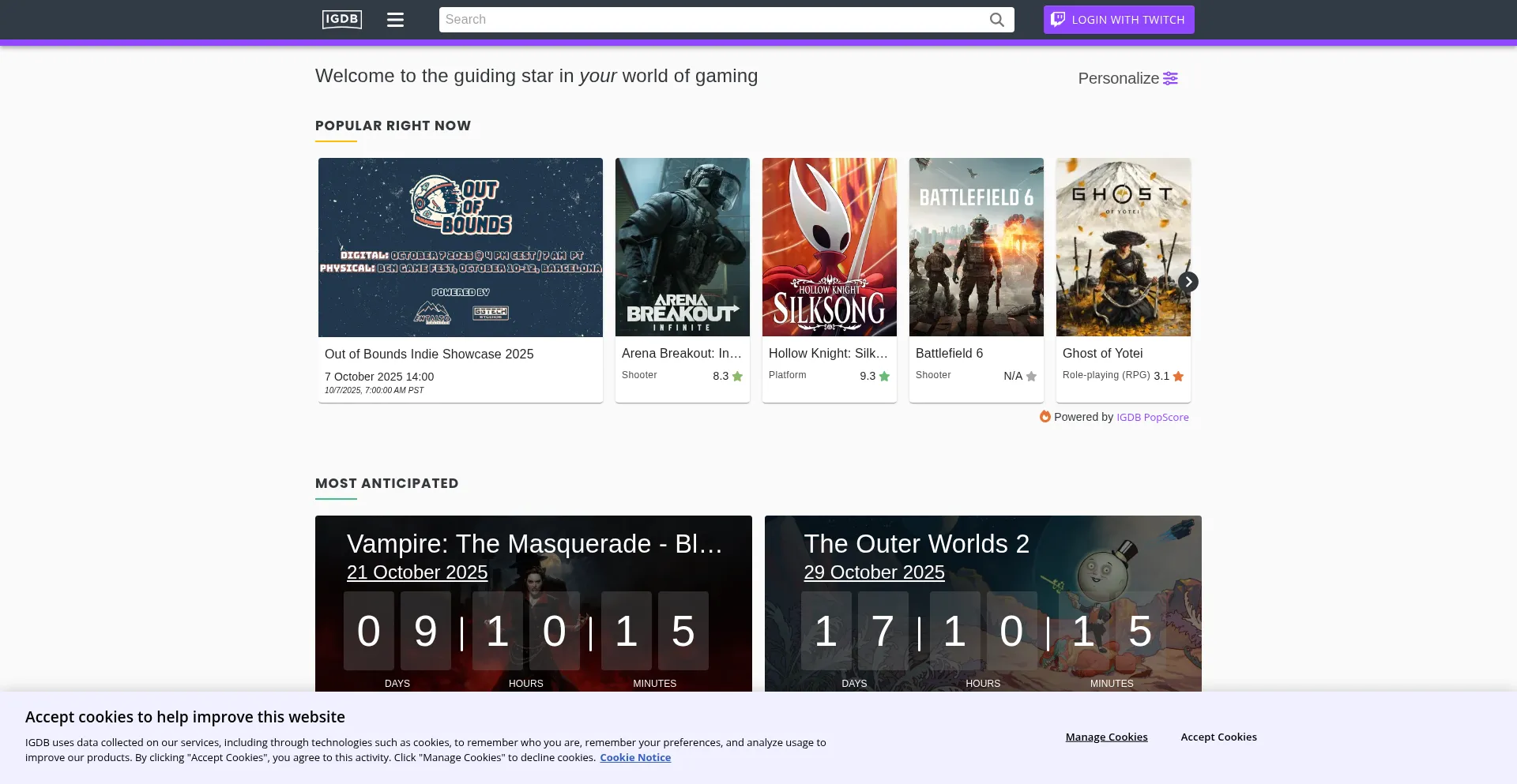 该网站实现符合GDPR或CCPA等隐私法规的cookie同意机制。这表明 igdb.com 遵守数据保护标准并为用户提供对个人数据收集实践的控制。
