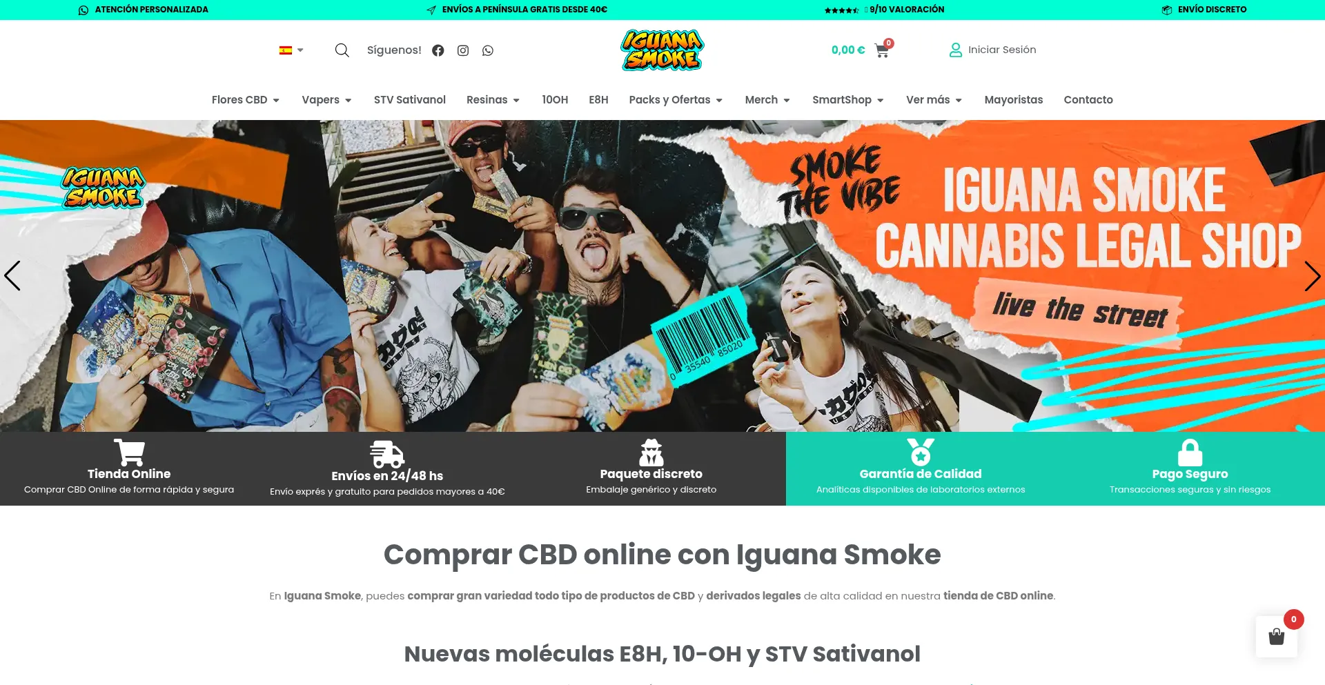 Iguana Smoke es tu tienda online de CBD en España. Compra flores de CBD legales, hachís, aceites y vapers de CBD con envío rápido y discreto. Calidad premium al mejor precio.