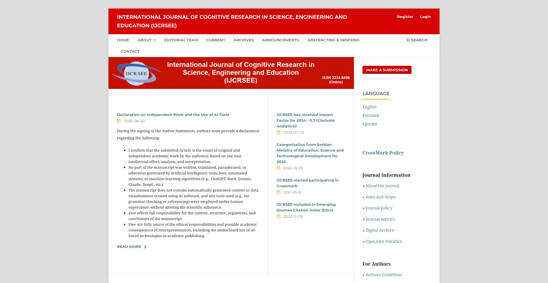 International Journal of Cognitive Research in Science, Engineering and Education (IJCRSEE)