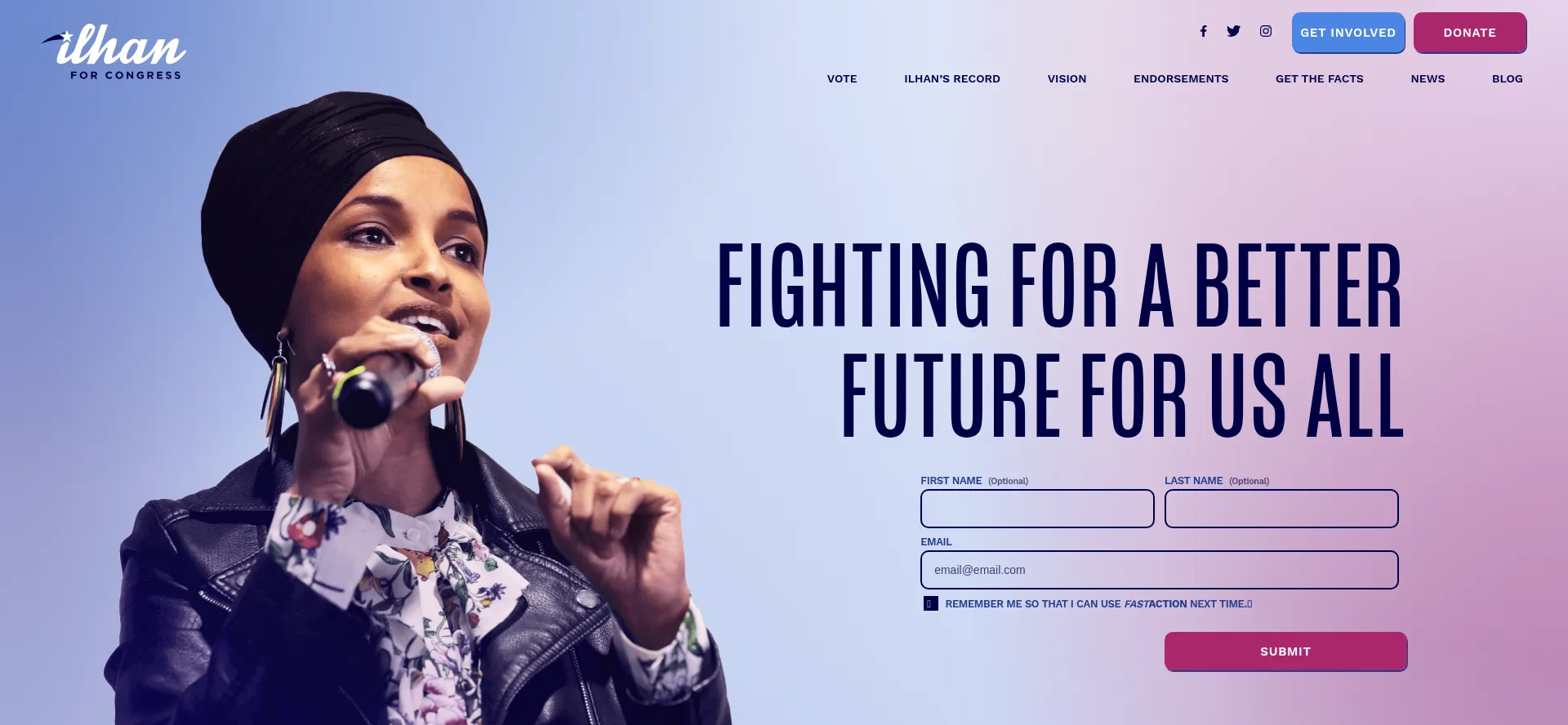 网站上存在社交媒体链接表明 ilhanomar.com 在社交媒体上维护官方账户,这是可信度和参与度的积极信号。