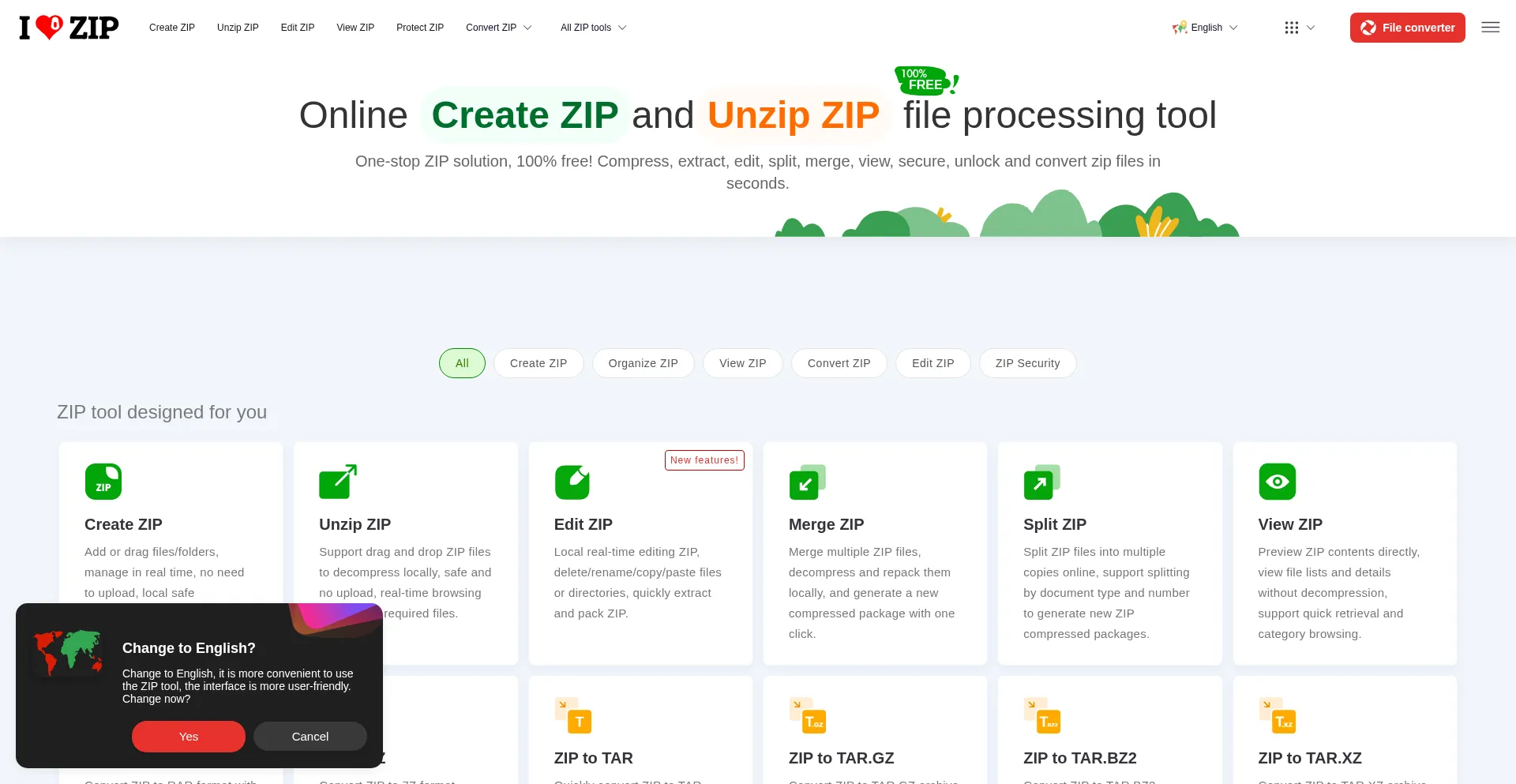 iLoveZIP is an online ZIP tool, Create ZIP, Unzip ZIP, Edit ZIP, Merge ZIP, Split ZIP, Preview ZIP, Protect ZIP, Unlock ZIP and more! Just a few clicks to complete.