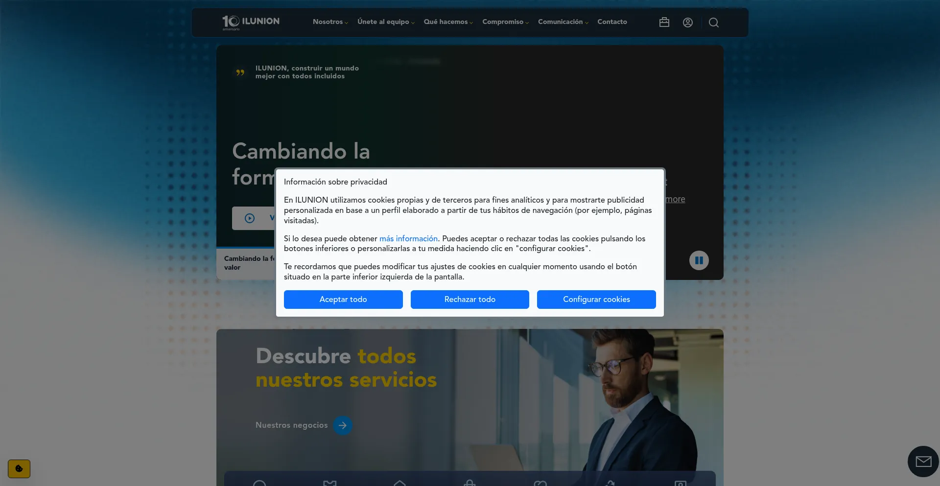 网站上存在社交媒体链接表明 ilunion.com 在社交媒体上维护官方账户,这是可信度和参与度的积极信号。