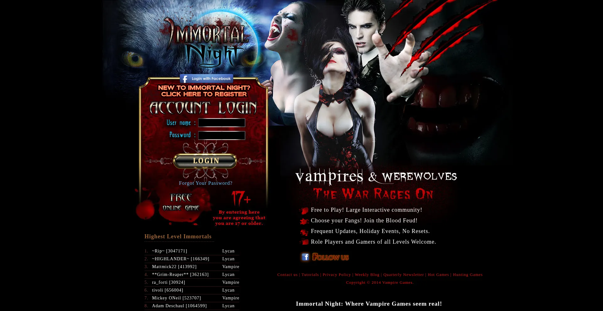 Play the hottest game on the net, Immortal Night. Play as a Vampire or Lycan and conquer the realm.