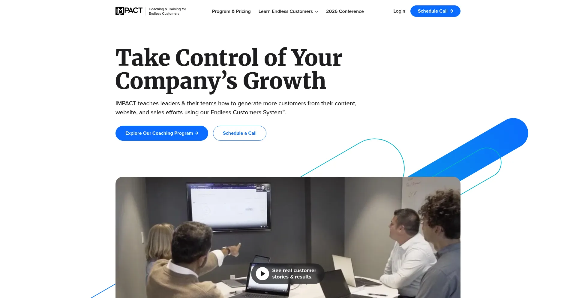 IMPACT teaches leaders & their teams how to generate more customers from their website, content, and sales efforts using our Endless Customers System.