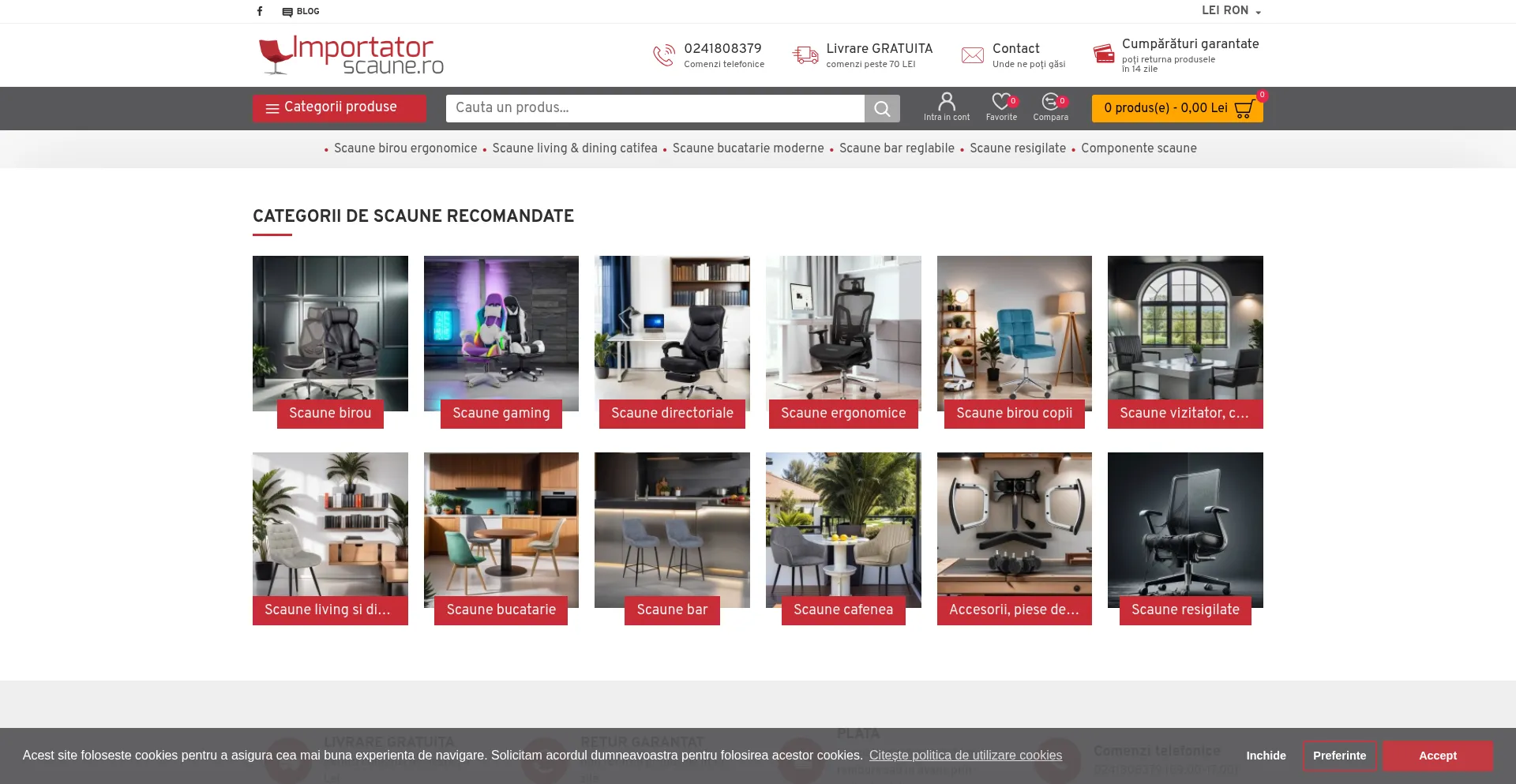 分析表明 importatorscaune.ro 作为电子商务平台运营,促进商品或服务的在线交易。该网站实现了购物车功能、支付处理系统和产品目录功能,这些是商业零售运营的典型特征。