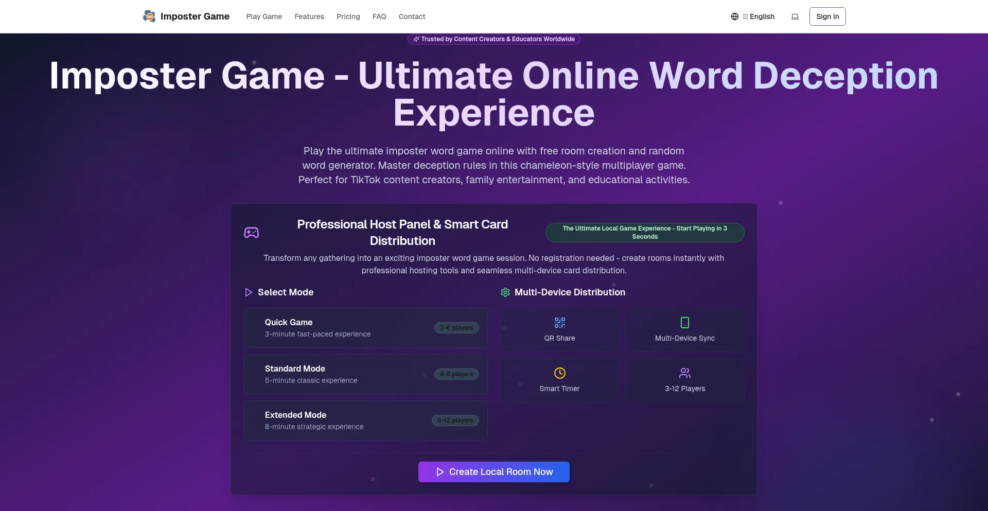 Play the ultimate imposter word game online with free room creation and random word generator. Master deception rules in this chameleon-style multiplayer game. Perfect for TikTo...