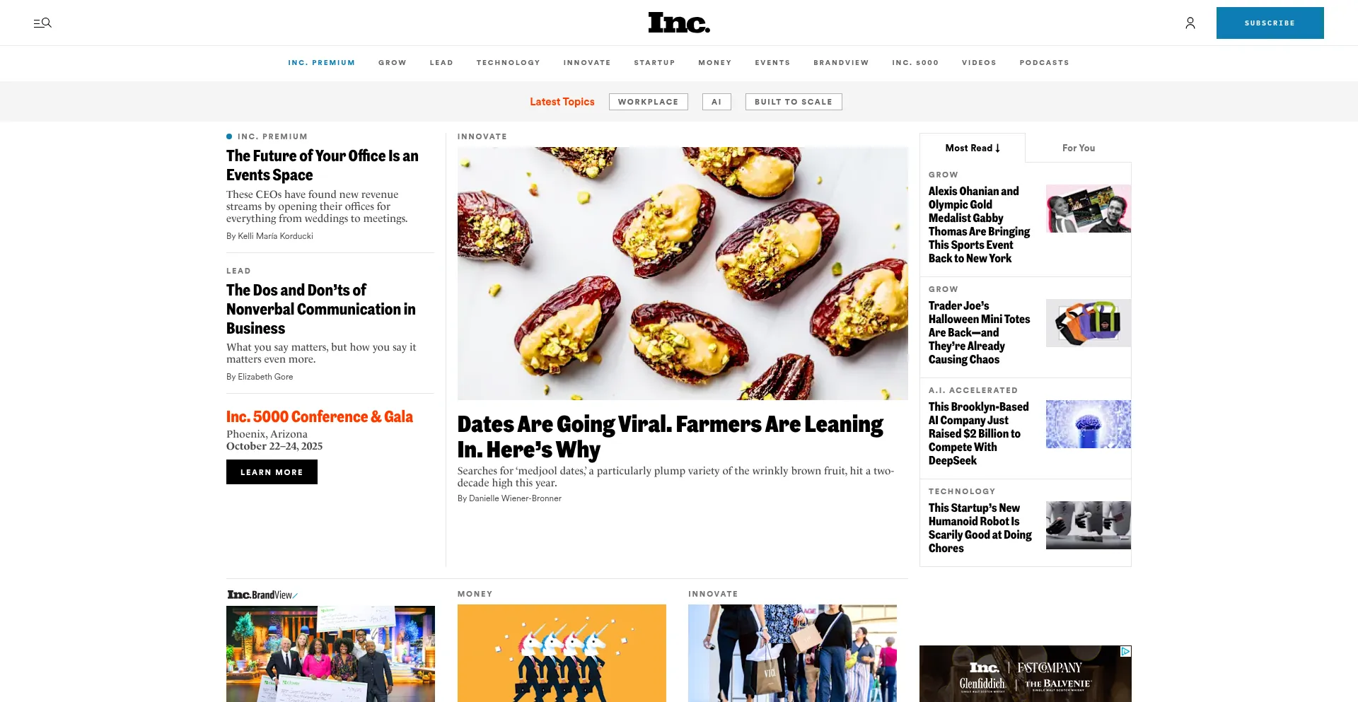 网站上存在社交媒体链接表明 inc.com 在社交媒体上维护官方账户,这是可信度和参与度的积极信号。
