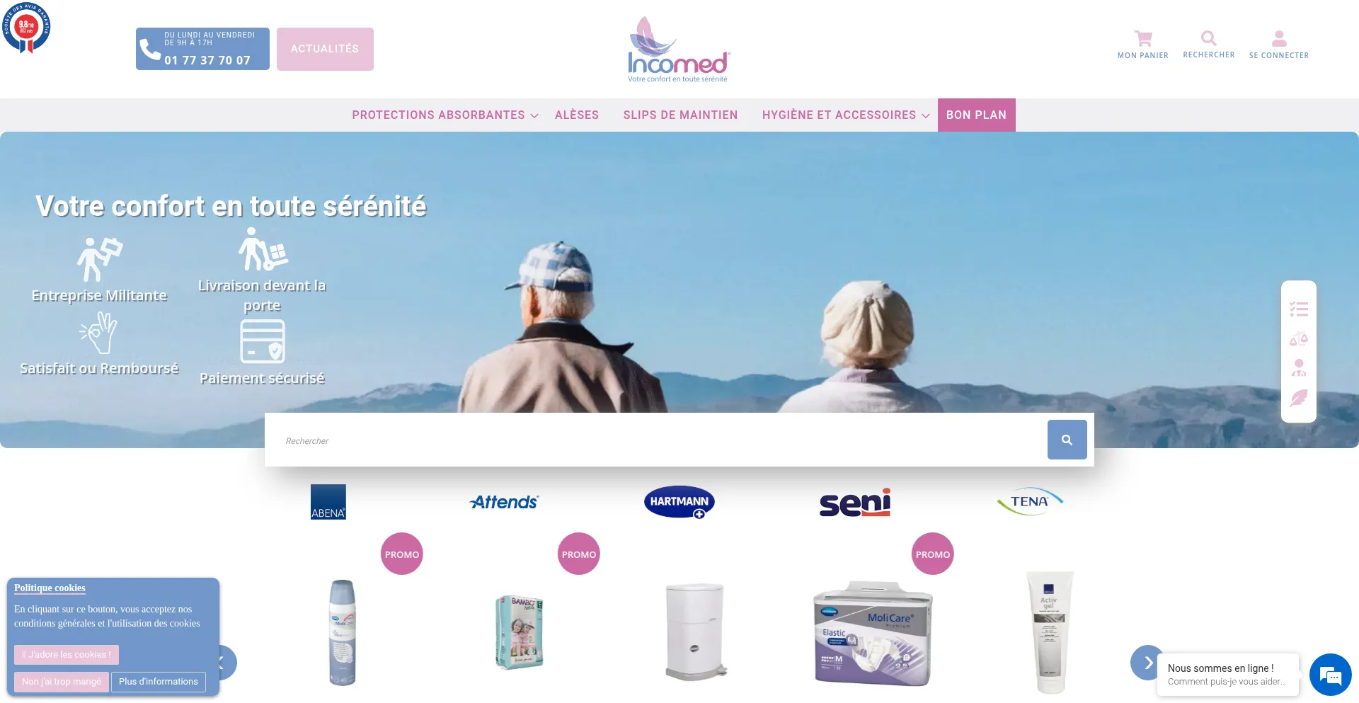 INCOMED, votre confort en toute sérénité. Vente en ligne de dispositifs de protection contre l’incontinence à prix grossiste pour les particuliers. Couches, slips absorban...
