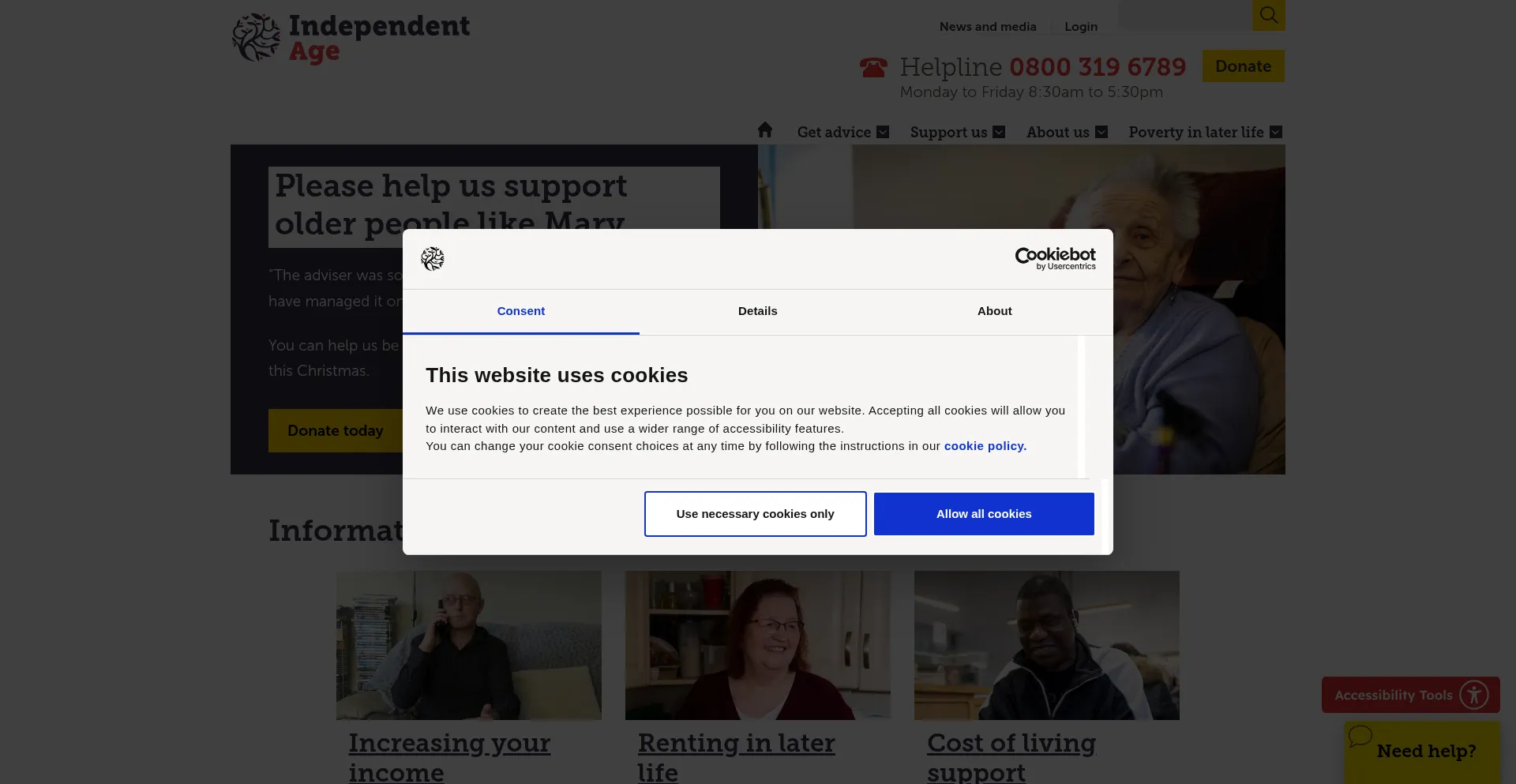 该网站实现符合GDPR或CCPA等隐私法规的cookie同意机制。这表明 independentage.org 遵守数据保护标准并为用户提供对个人数据收集实践的控制。