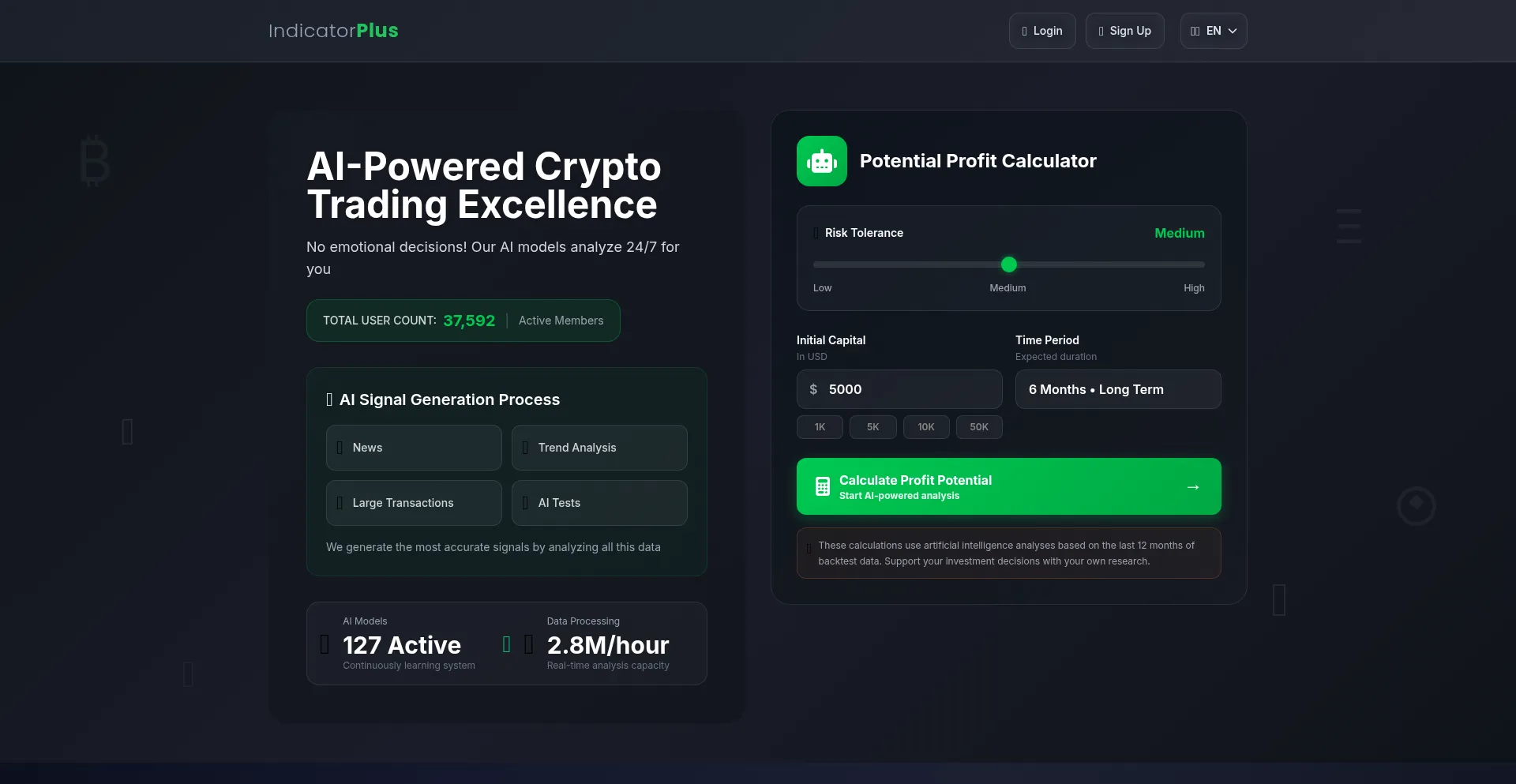 IndicatorPlus - Optimize your investments with the best crypto trading indicators and AI bot. Get professional trading signals 24/7.