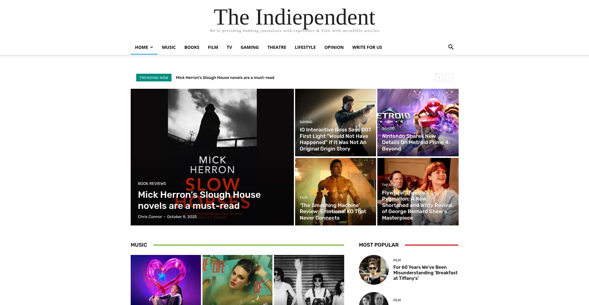 The Indiependent publishes music, books, film, tv, gaming, theatre, opinion and lifestyle content by early career stage journalists.