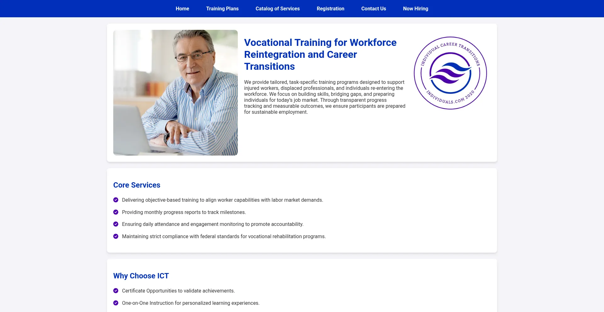 Individual Career Transitions (ICT) provides vocational training for injured workers and individuals transitioning careers. Learn more about our tailored programs and services.