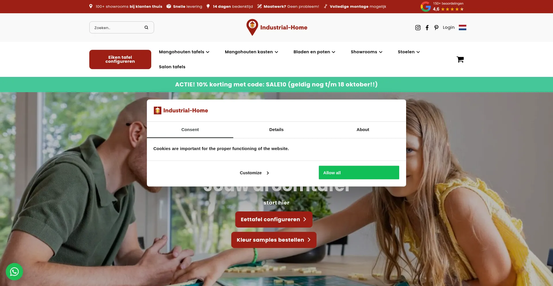 该网站实现符合GDPR或CCPA等隐私法规的cookie同意机制。这表明 industrial-home.com 遵守数据保护标准并为用户提供对个人数据收集实践的控制。