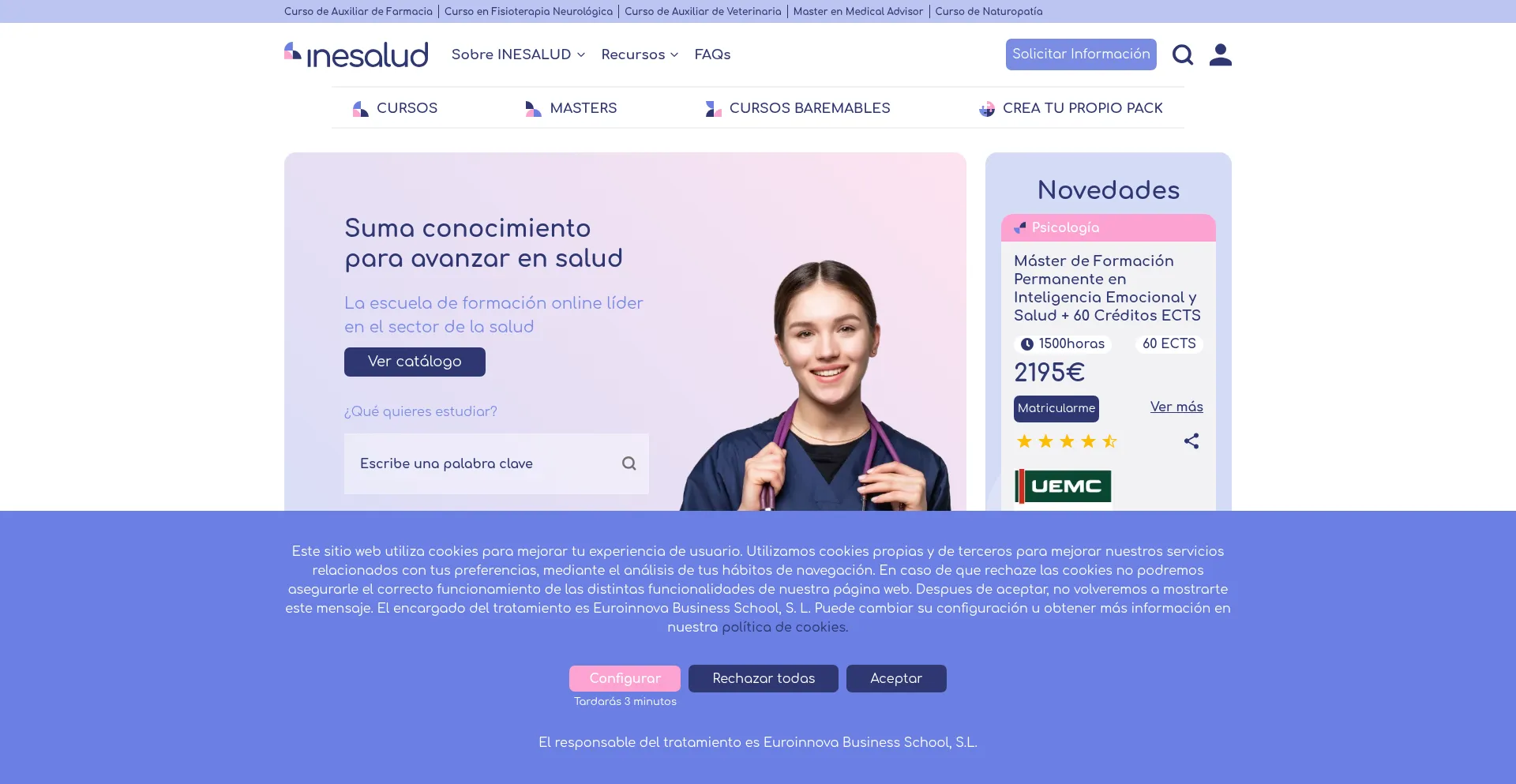 该网站实现符合GDPR或CCPA等隐私法规的cookie同意机制。这表明 inesalud.com 遵守数据保护标准并为用户提供对个人数据收集实践的控制。