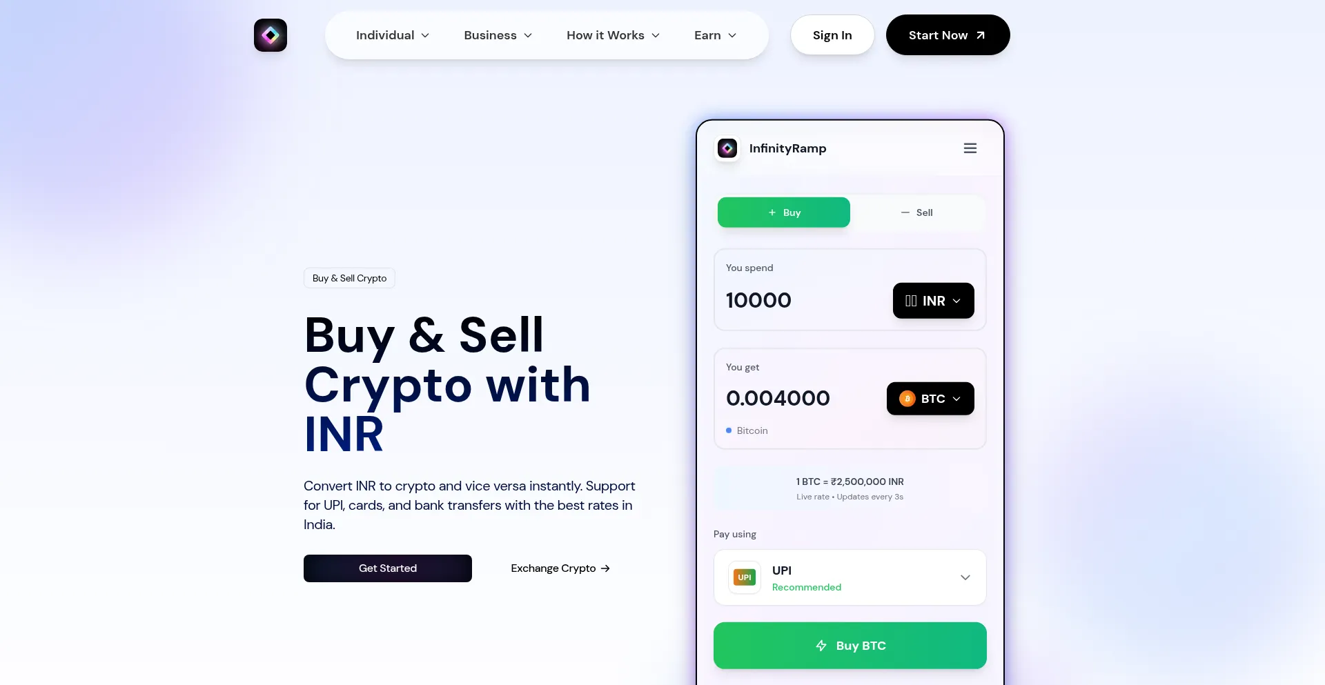 InfinityRamp.com - India's #1 crypto exchange with LOWEST RATES. Buy Bitcoin, Ethereum & 50+ cryptocurrencies with instant INR onramp/offramp. 0% fees, instant settlements, RBI ...
