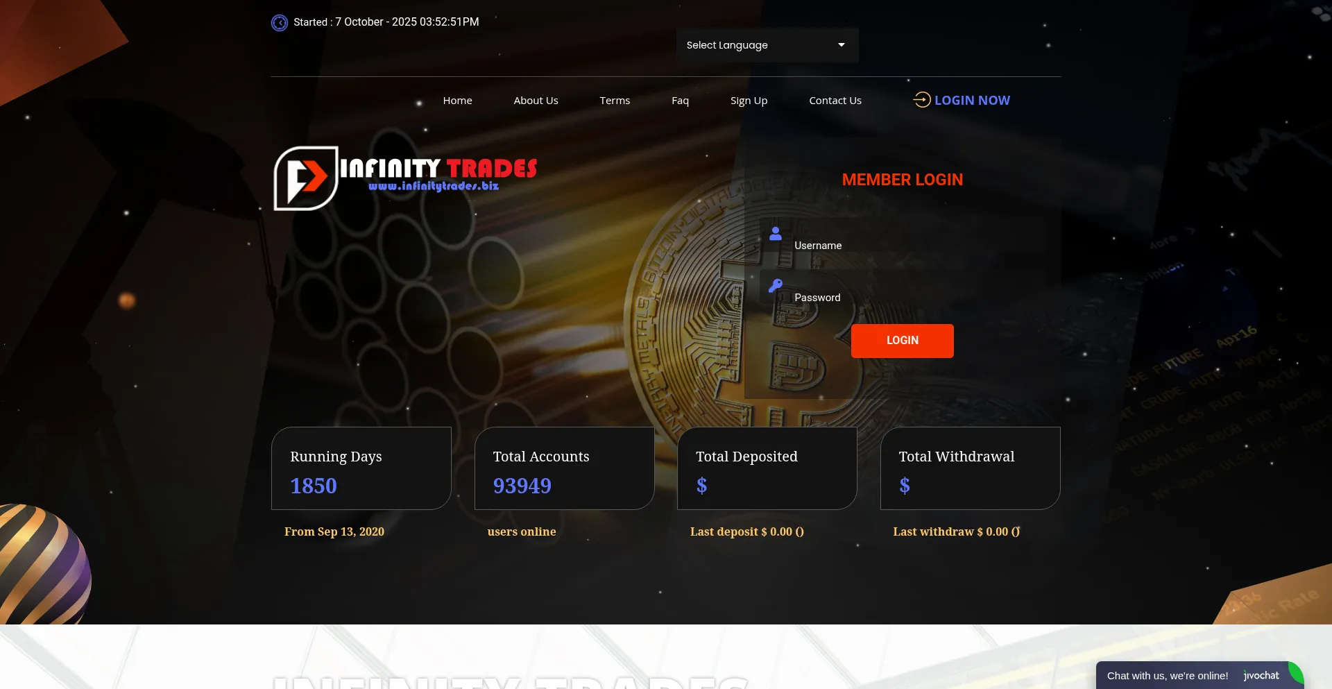 infinitytrades.biz 使用 Bootstrap,这是一个广泛采用的开源响应式网页开发框架。Bootstrap 通过标准化组件和样式实现移动友好界面的高效创建。