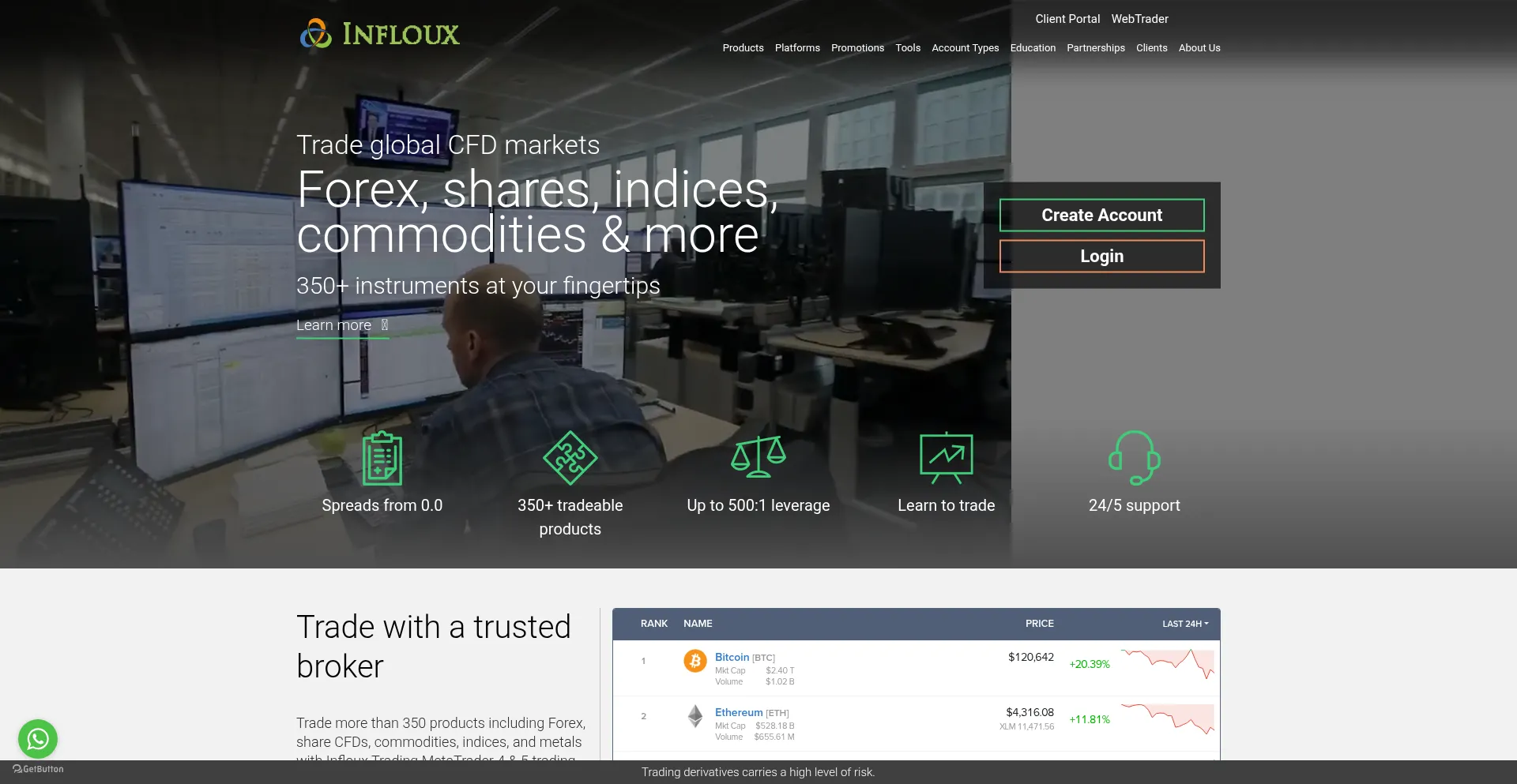 Trade CFD markets. Forex broker, shares, indices, & metals. Infloux Trading .