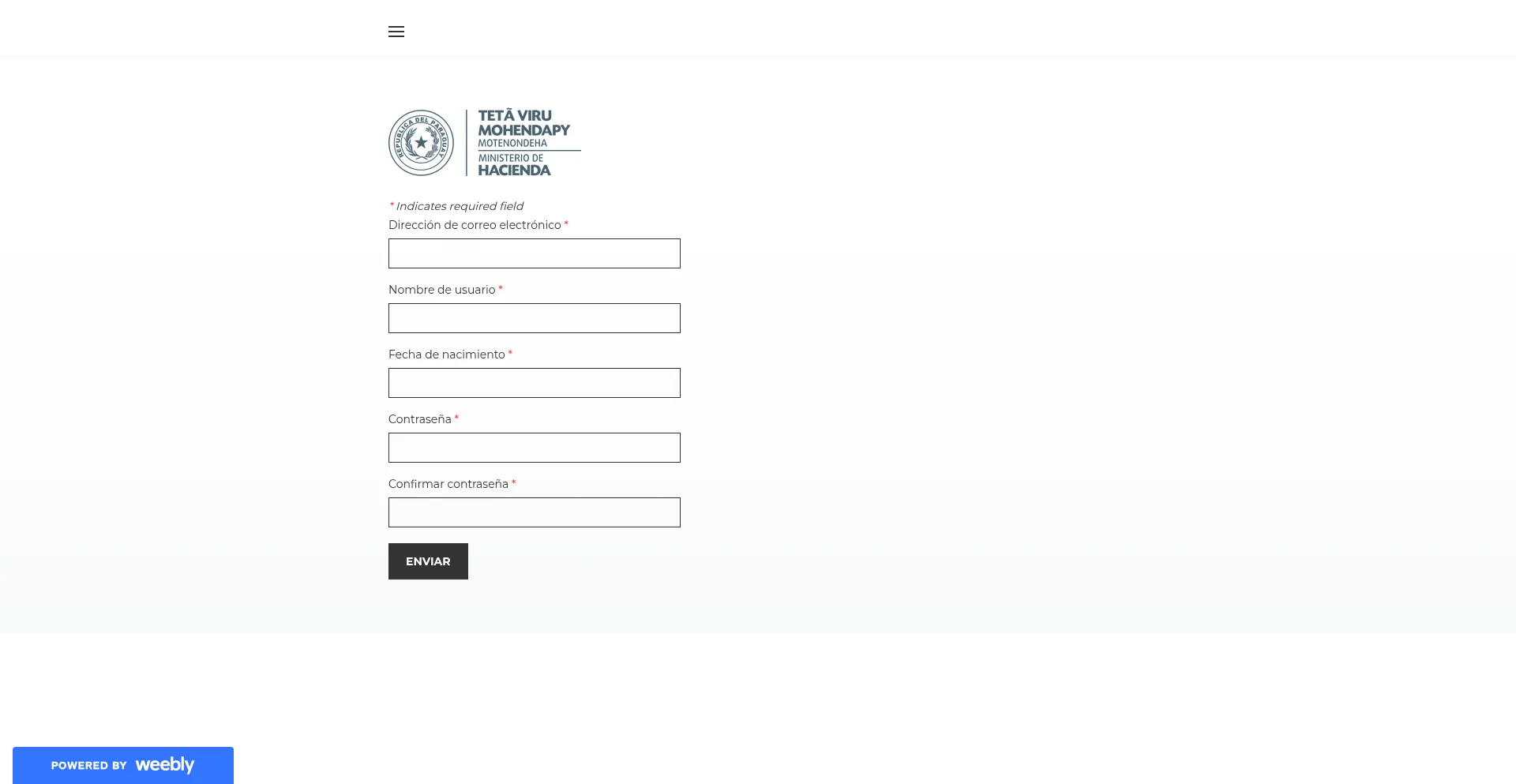 该网站实现数据收集表单,请求个人信息,包括姓名、电子邮件地址、电话号码或其他敏感详细信息。用户应验证 info-hacienda-gov.weebly.com 的合法性并在提交个人数据前查看隐私政策。