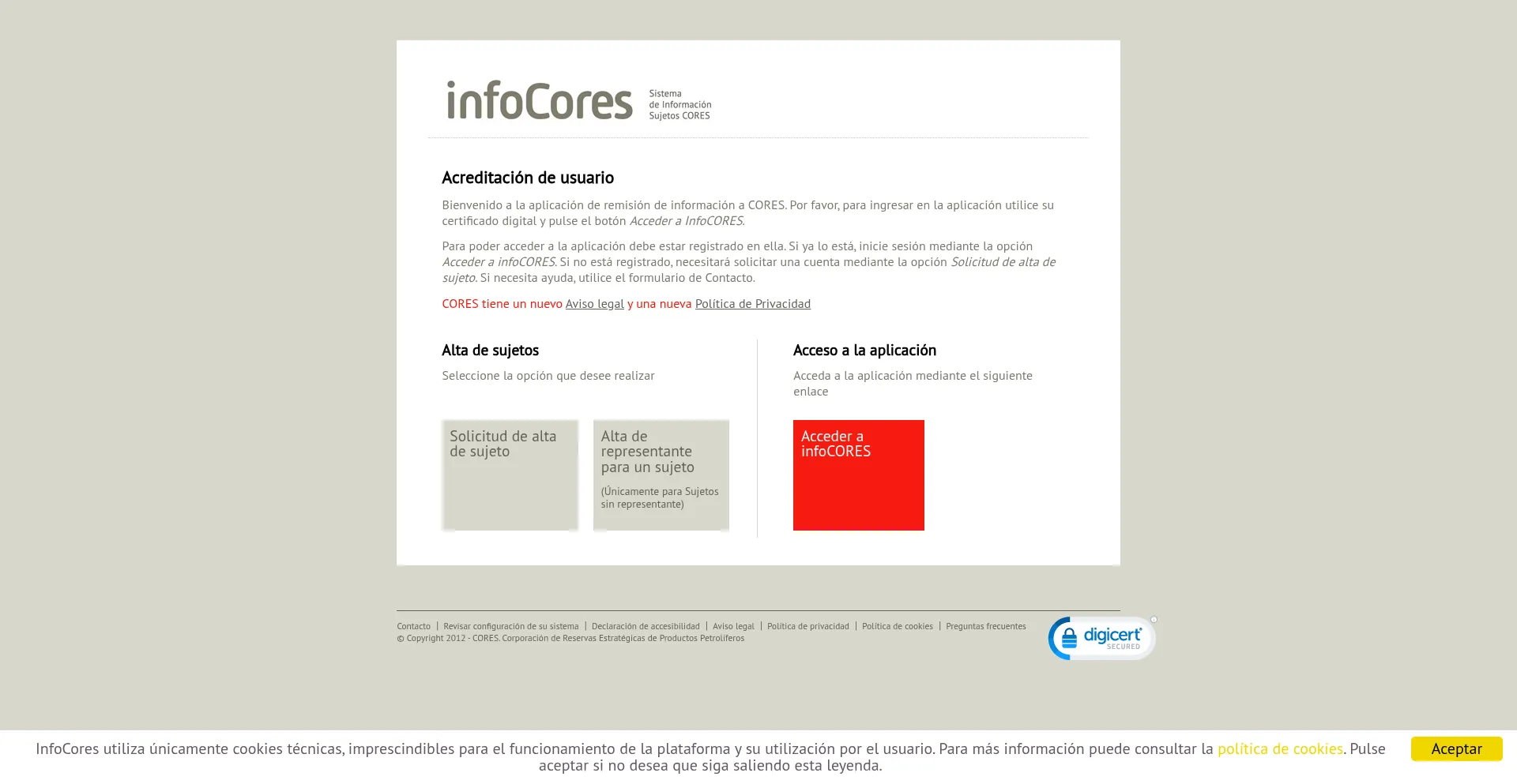该网站实现数据收集表单,请求个人信息,包括姓名、电子邮件地址、电话号码或其他敏感详细信息。用户应验证 infocores.cores.es 的合法性并在提交个人数据前查看隐私政策。