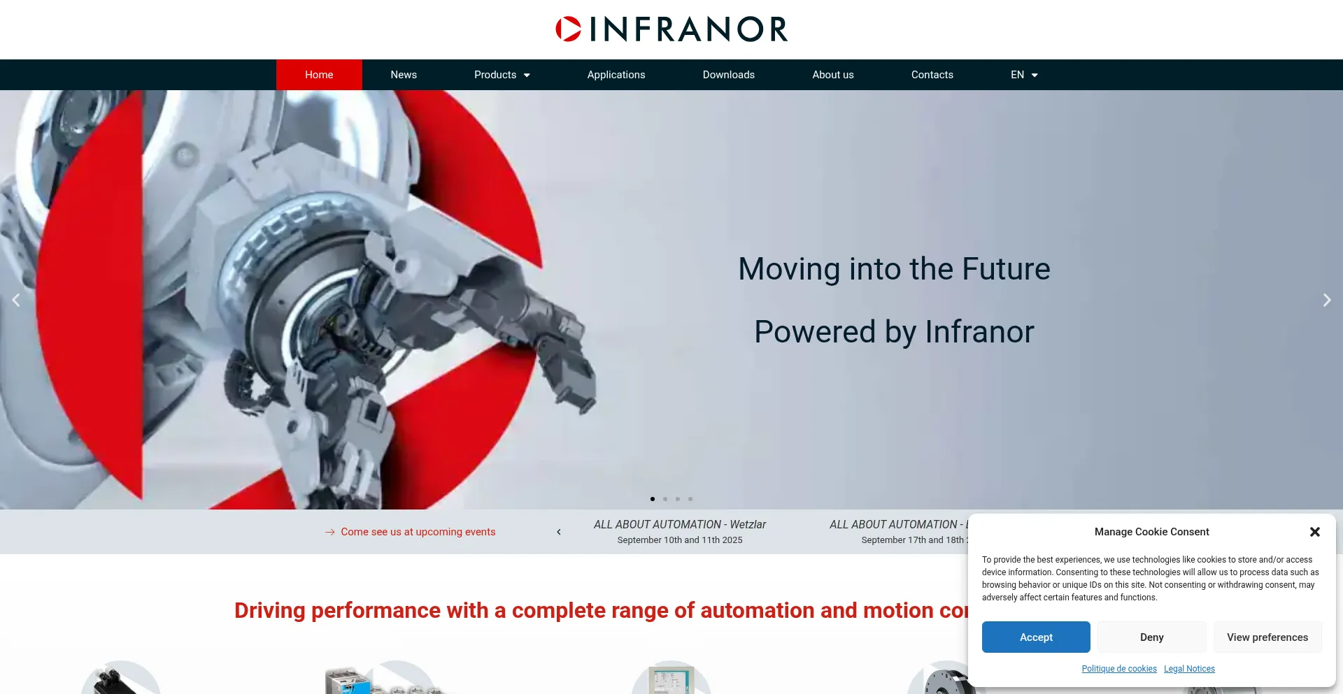 Infranor Servomotors, servo drives, numeric controls and components for Robotics, intra-logistics, machine tools and industrial automation.