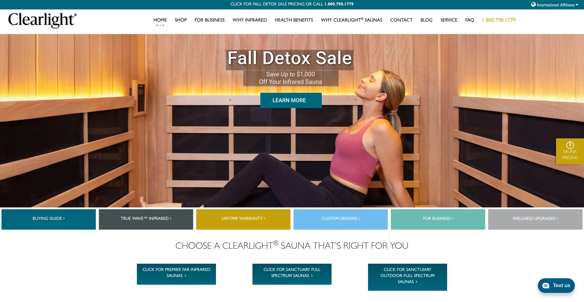 Find a high-quality infrared sauna for your home or business with 12 months NO interest financing. Learn how Clearlight® saunas help with detox & weight loss.
