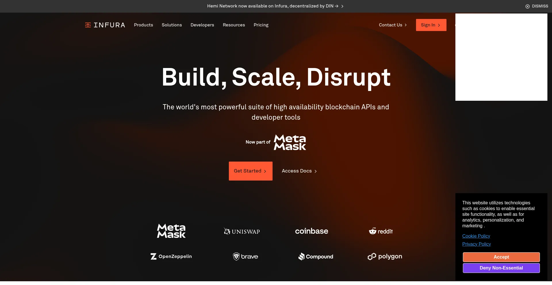 该网站实现符合GDPR或CCPA等隐私法规的cookie同意机制。这表明 infura.io 遵守数据保护标准并为用户提供对个人数据收集实践的控制。