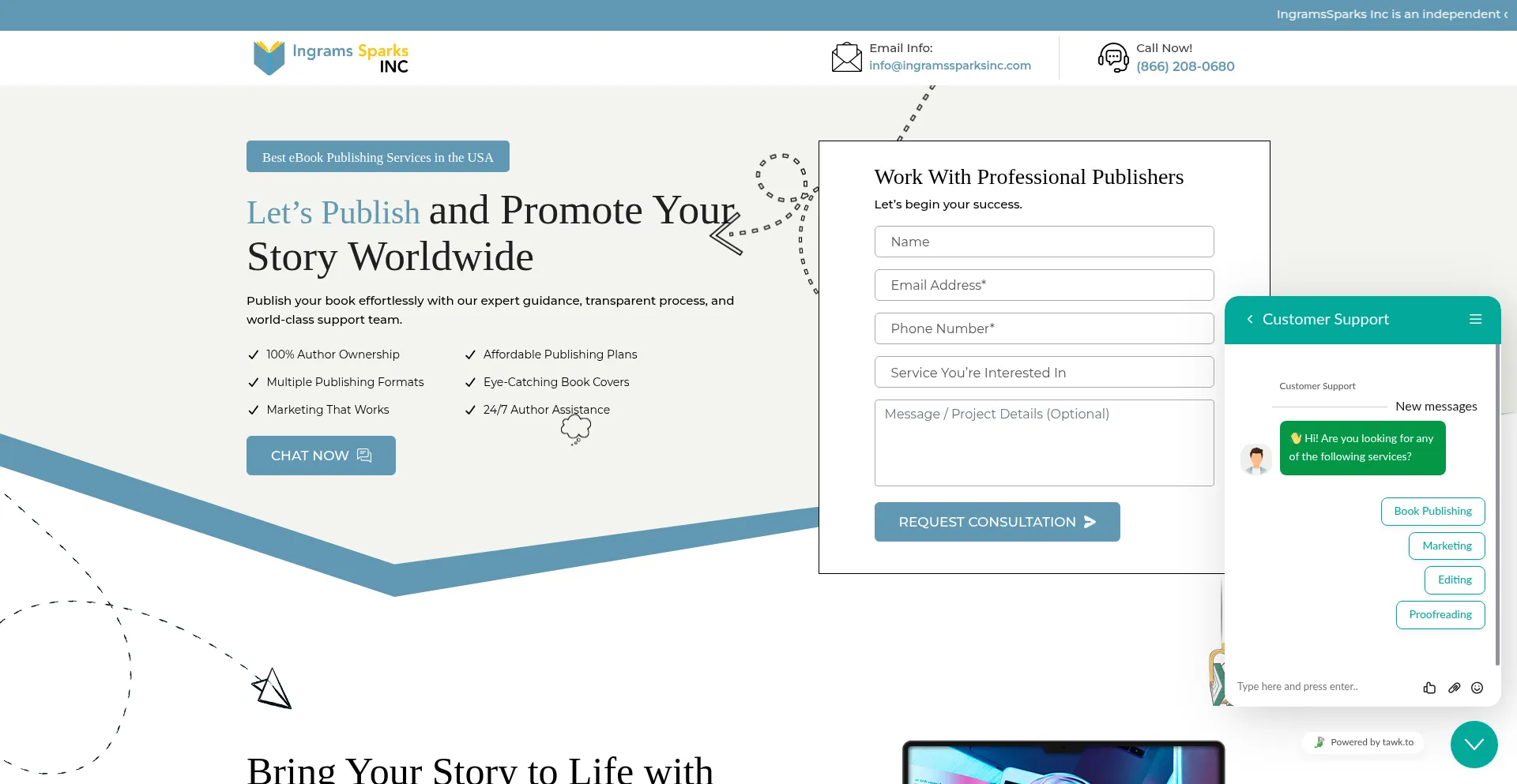 该网站实现数据收集表单,请求个人信息,包括姓名、电子邮件地址、电话号码或其他敏感详细信息。用户应验证 ingramssparksinc.com 的合法性并在提交个人数据前查看隐私政策。