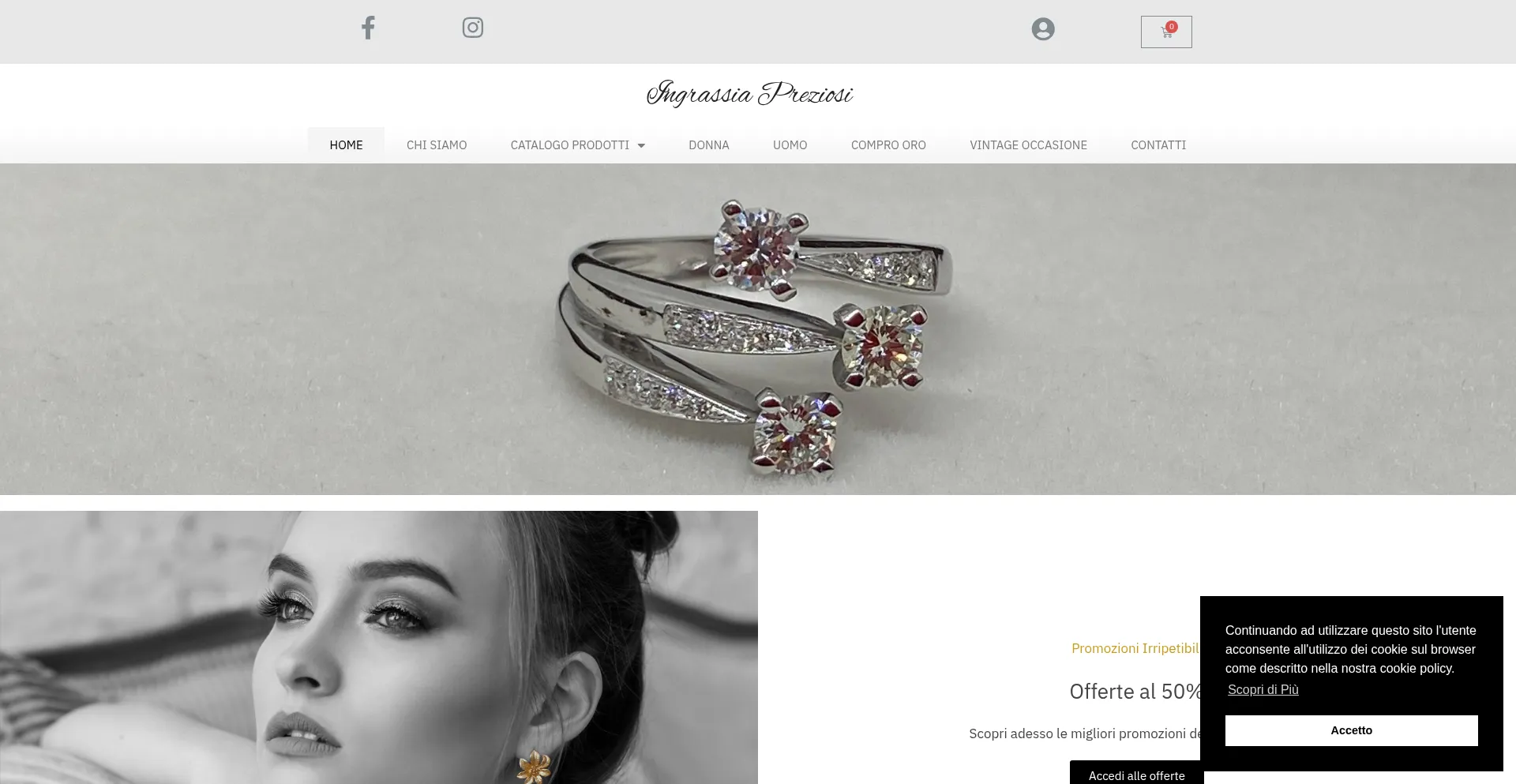 该网站实现符合GDPR或CCPA等隐私法规的cookie同意机制。这表明 ingrassiapreziosi.it 遵守数据保护标准并为用户提供对个人数据收集实践的控制。