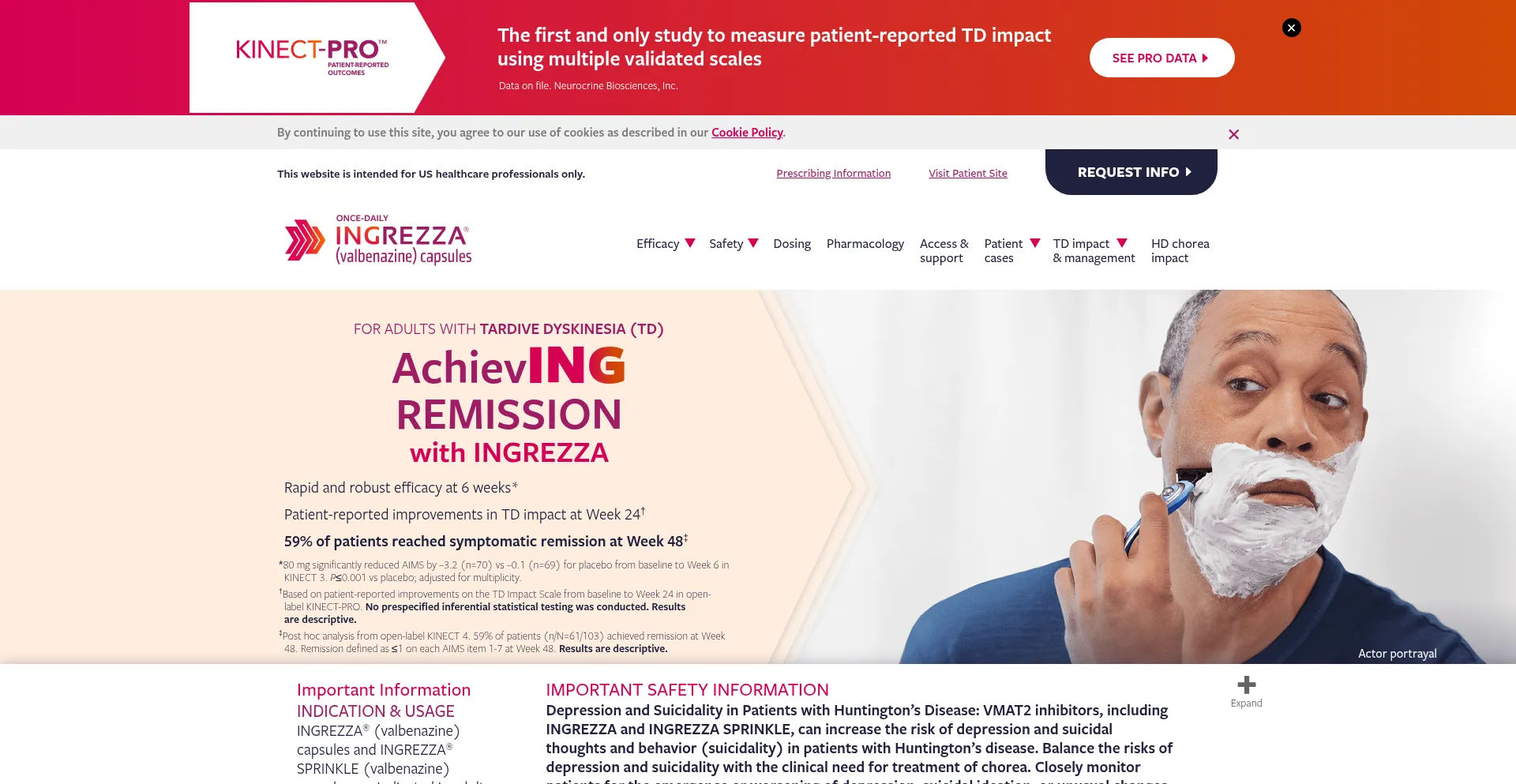 Learn about once-daily INGREZZA for adult patients with tardive dyskinesia or Huntington’s disease chorea. See Prescribing Info, including Boxed Warning.
