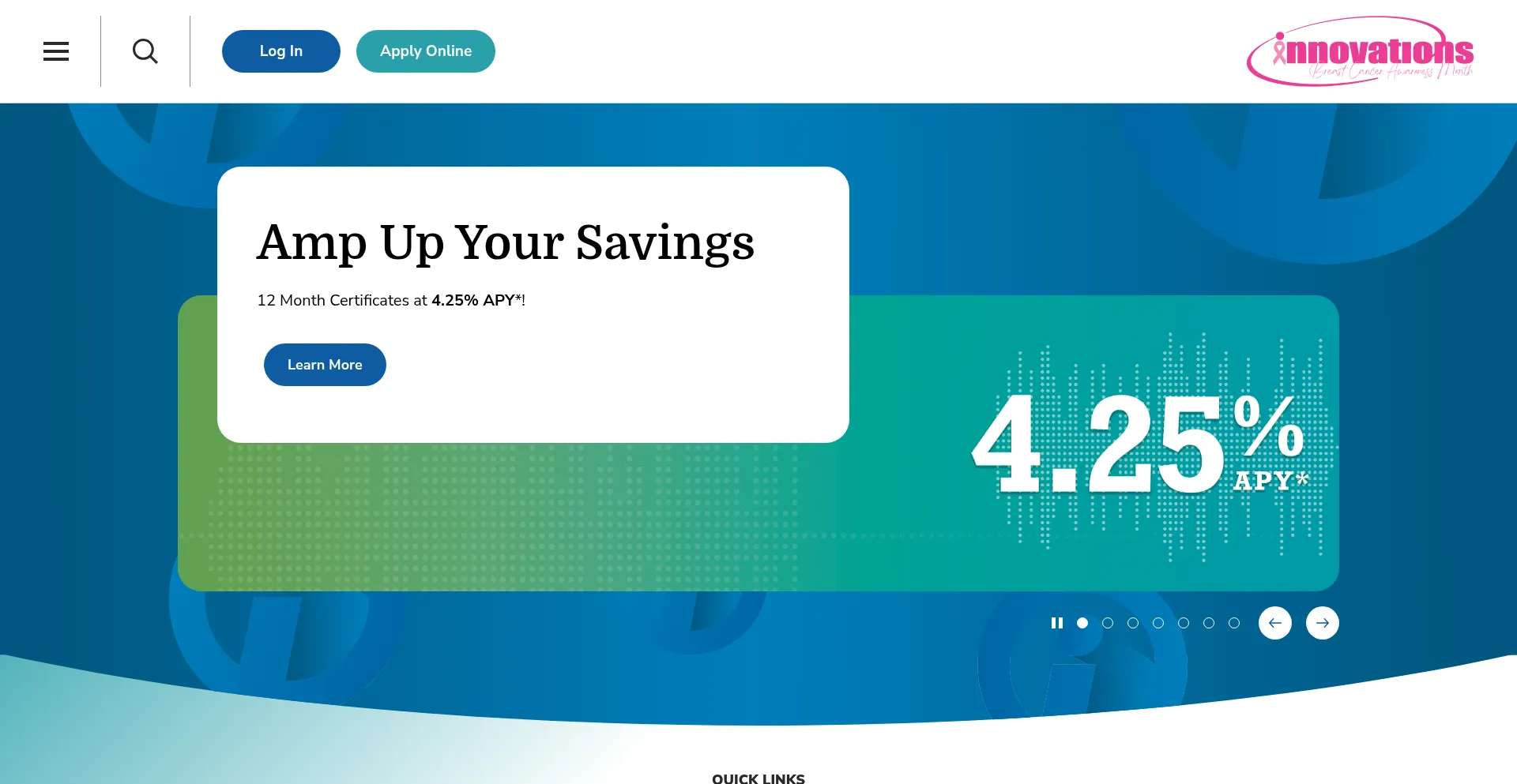 网站 innovationsfcu.org 被配置为一个带有移动应用功能的网络应用。用户可以直接将该网站安装到设备的桌面上,以快速访问并享受类似移动应用的体验。