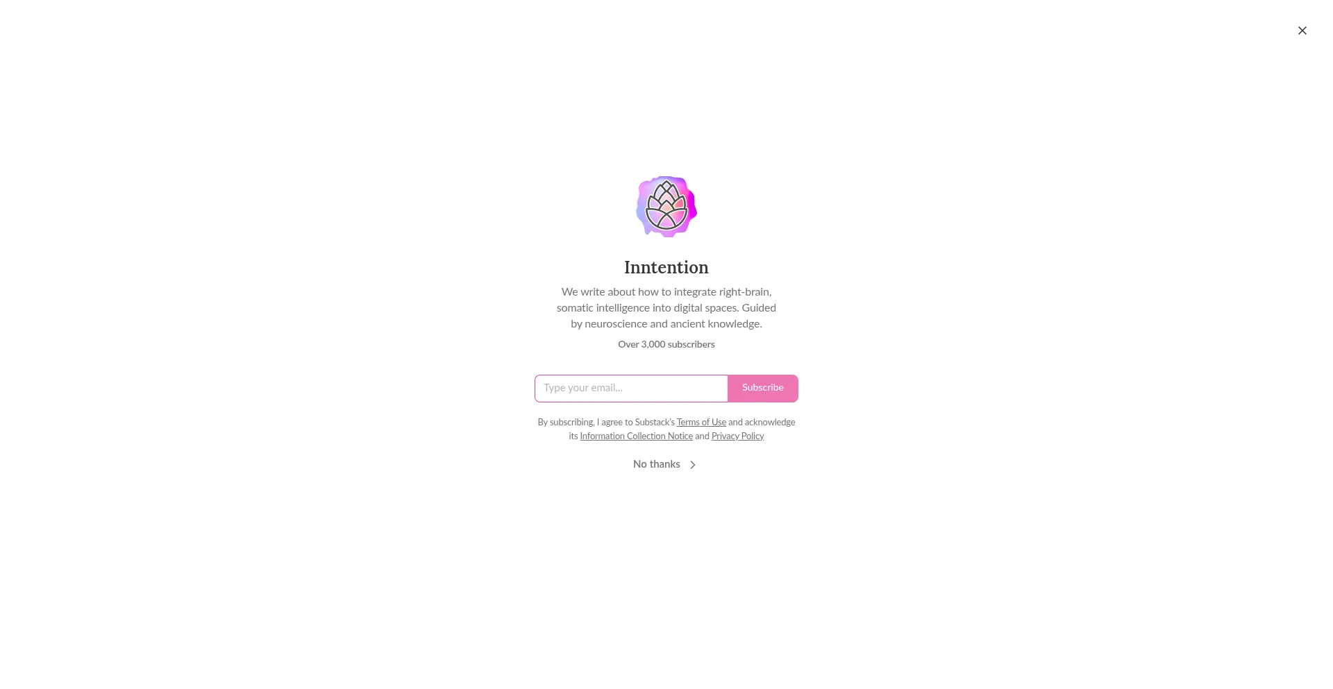 We write about how to integrate right-brain, somatic intelligence into digital spaces. Guided by neuroscience and ancient knowledge. Click to read Inntention, by Inntention Rese...